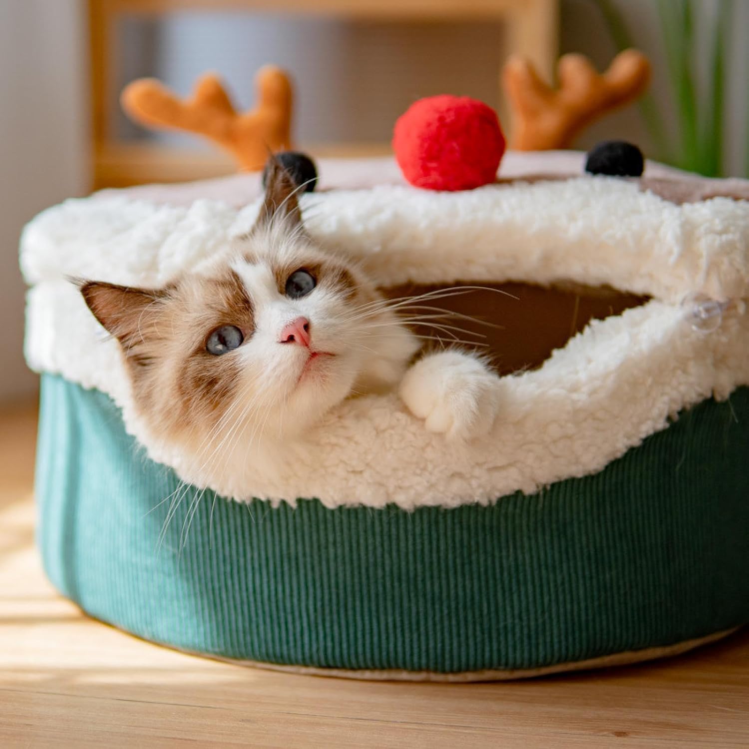Style: ElkSize: 45x24cm/17x9inchesSuitable for: cats and dogs weighing less than 7kg/15lbMaterials: lid - short-haired imitation rabbit wool, middle and inner - white lamb's fleece, bottom - corduroy