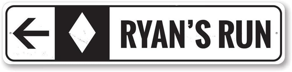Personalized Diamond Ski Run Arrow Mountain Lodge Cabin Decor Skiing Sign6 x 24 inchesA Brand New Sign! Novelty sign perfect to hang in your home. Our novelty signs are excellent wall decor, made of Sturdy Aluminum.All of our street signs are made of Premium Materials, purchased within the USA. The sign itself is made of aluminum and will never rust providing years of enjoyment indoors and outdoors. No Cheap plastic!Conveniently placed Pre-drilled Holes for Easy Mounting so you can easily decorate your Pub, Man Cave, Bedroom, Home Office or Garage!All of our concepts, processes and designs are proudly Made in the United States, in our shop in the heartland of the USA, in Lizton, Indiana.The Lizton Sign Shop is a family ran and operated business.We enjoy what we do and feel it shows in the finished result. We look forward to serving you and enjoy the relationships we have created over the years with all of our customers. Click "Add to Cart" to get this sign now!