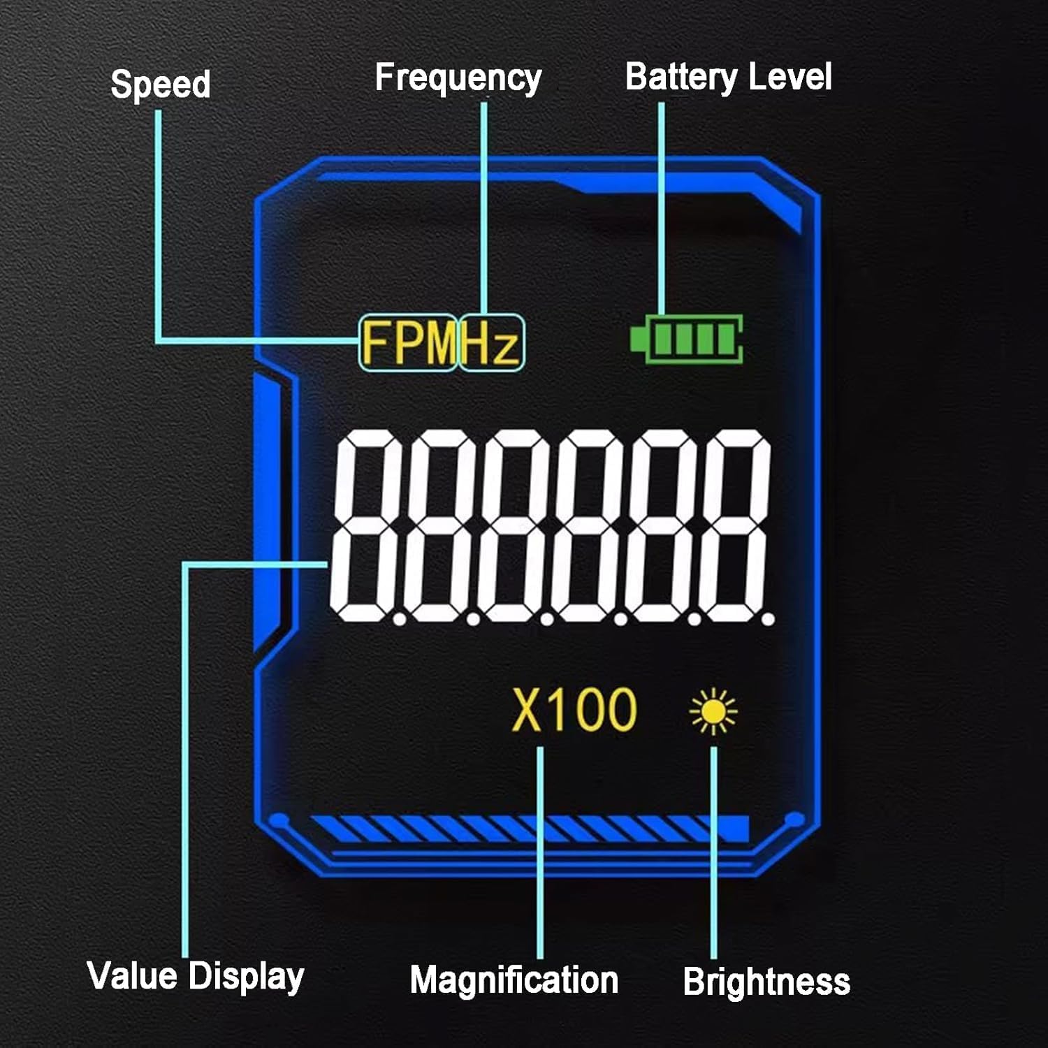 Product description LED stroboscopes can make fast-rotating equipment appear to be moving slowly or stopped. They are a great tool for motion analysis, preventive maintenance, print inspection, harmonic analysis, and repetitive motion speed measurement Specifications: Product Name: LED Stroboscope Tachometer Accuracy: 0.001% Display: LCD Power Consumption: ≤2W (operating) Range: 60-99,999 rpm Illumination: 1500 LUX Power Supply: 7.4V 2000 mAh Li-ion Battery Size: 118*78*210 mm Weight: 366g Product Includes: 1*Digital Handheld Stroboscope