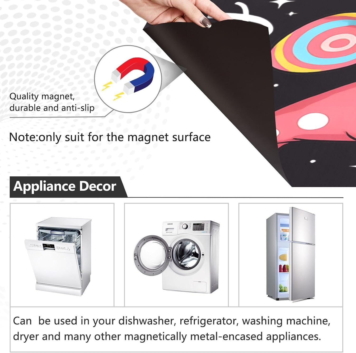Decorate your kitchen life!This magnetic dishwasher cover is a work of art, decorating your kitchen art, with a sense of fashion and art, highlighting your quality life!Size in 23 x 26 inches. This size fits most dishwashers.Cut it to your own size to fits your need.FeatureWaterproof, heat resistant, scratch and tear resistant. Magnetic stickers hide scratches, dents or other unsightly marks.Magnetic MaterialMagnetic sticker will not fall from magnetic dishwasher and disassemble easily.Protect the dishwasher from scratches, it can also decorate your kitchen home.Please NoteMagnetic dishwasher cover is made of PVC+PET, only suit for the magnet surface.Install: Trim the proofreading position, the magnetic force on the back will stick to it.