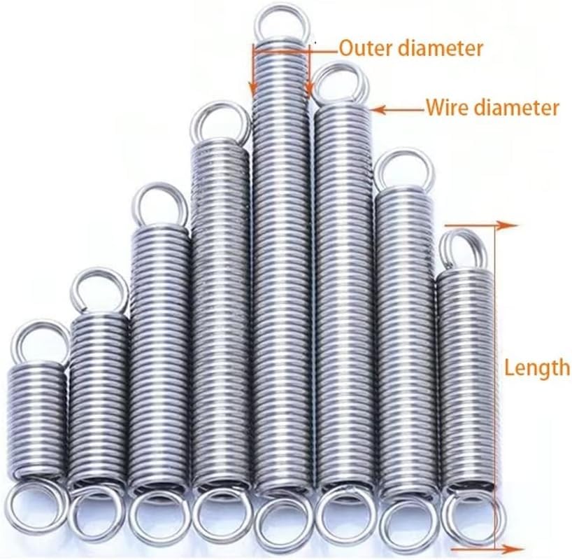[Name]: Tension Spring [Width Diameter]: 1.2mm [Outer Diameter]: 10mm [Length]: 30mm, 35mm, 40mm, 45mm, 50mm, 60mm [Quantity]: 5pcs [Customer Support]: If you need any help, please feel free to contact us. We will give you a satisfactory solution within 24 hours.