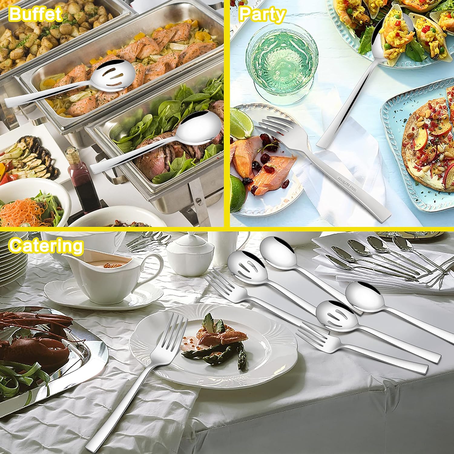 E-far 60-Piece Silverware Set and 6-Piece Serving Utensils, Stainless Steel Tableware Set Service for 12 for Home Restaurant Party Buffet, Square Edge & Mirror Polished, Dishwasher Safe