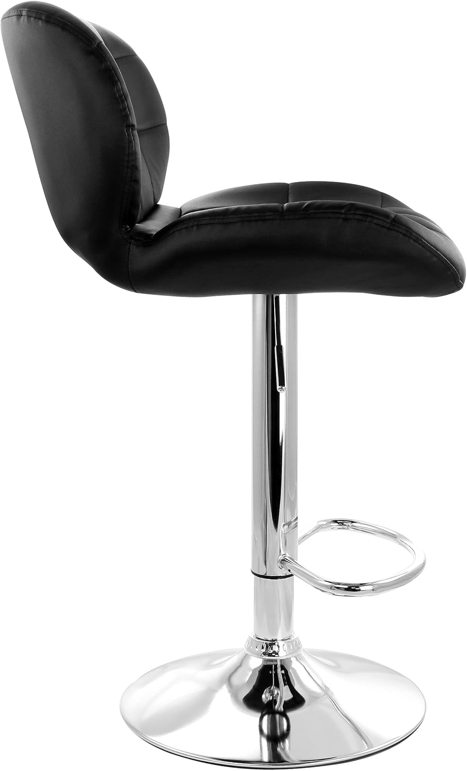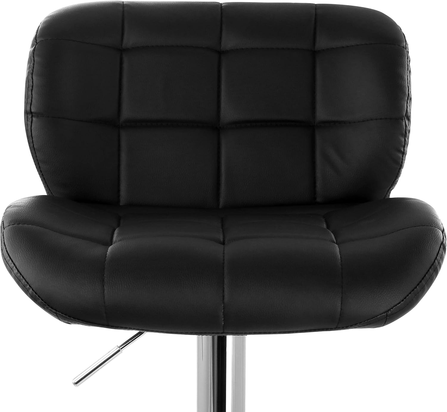 Add a stylish touch to your home bar or kitchen counters with the Elama 2 Piece Tufted Faux Leather Adjustable Bar Stool in Black with Chrome Base. Made of quality cushioned faux leather and sturdy metal, this set of stools is made to last. Adjustable swivel base allows you to customize height to wherever you need these stools to fit. Foot rest provides extra support while seated high, and the arm-less design lets you easily fit stools side by side while saving space.