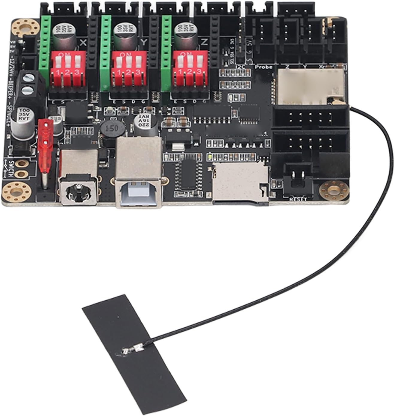 SpecificationItem Type: Laser Engraver MainboardMaterial: PCBModel: FOR MKS DLC32, motherboard. A4988, driver.Voltage: 12-24VDCMCU: ESP32-WROOM-32U, 32bits.MCU Frequency: 240MHzFLASH: 8192K BytesRAM: 520K BytesEngraving Speed: <=8000mm/minPC Engraving: SupportsOffline Mode: SupportsLCD: SupportsIntegrated WIFI: SupportsWeb Page Control: SupportsMobile APP Control: SupportsFor GRBLaser: SupportsFor LightBurn: SupportsA4988 Driver Features and Advantages:1. Low RDS on output.2. Automatic current attenuation mode detection or selection.3. Mixing with slow current decay mode.4. Synchronous rectification, low power consumption.5. Internal undervoltage lockout.6. Cross flow protection.7. 3.3 and 5 V compatible logic power supply.8. Thermal shutdown circuit.9. Earth fault protection.10. Load short circuit protection.11. 5 Available Stepper Modes: full step, 1/2, 1/4, 1/8, and 1/161. Package List1 x Laser Engraver Mainboard3 x Driver3 x Accessory1 x Data Cable