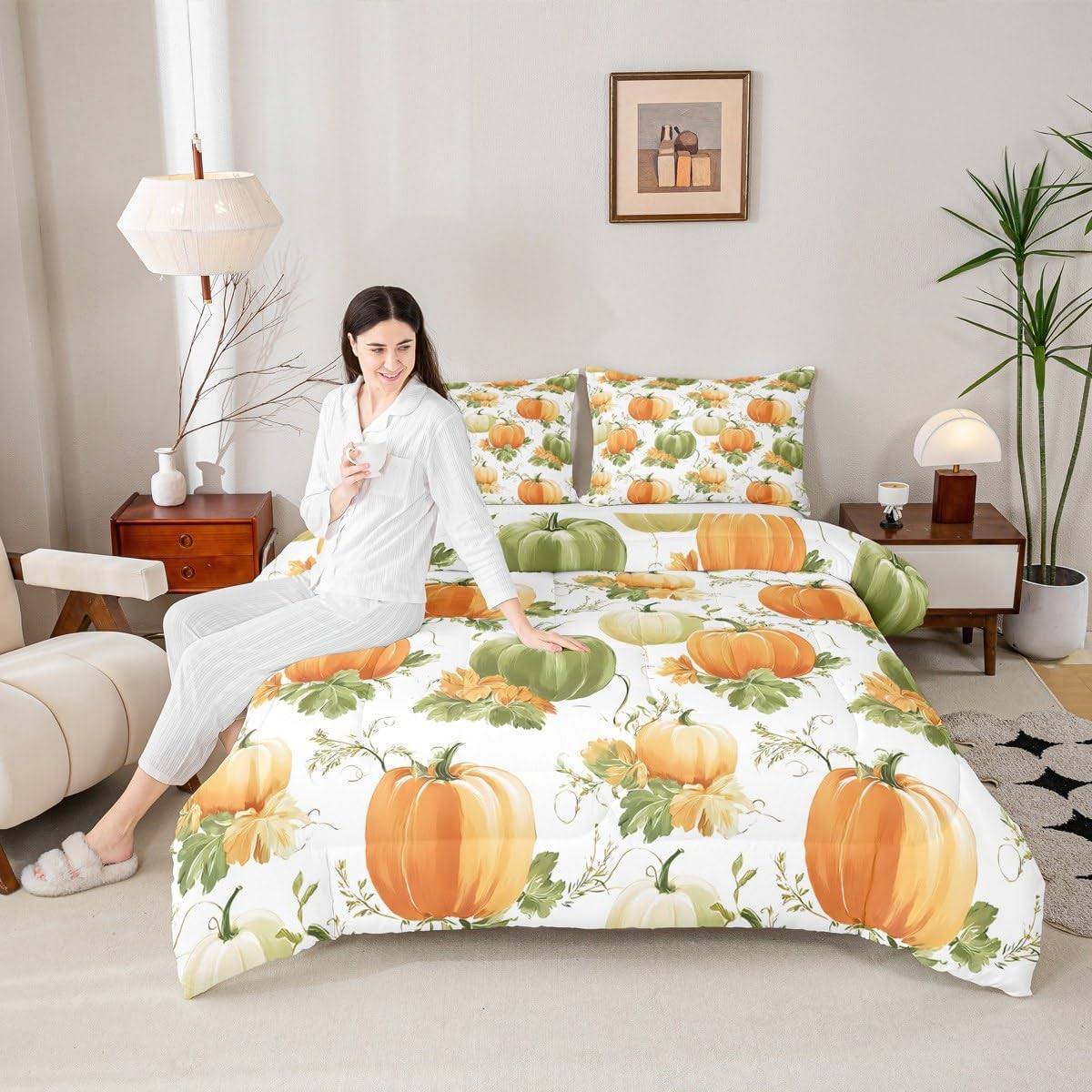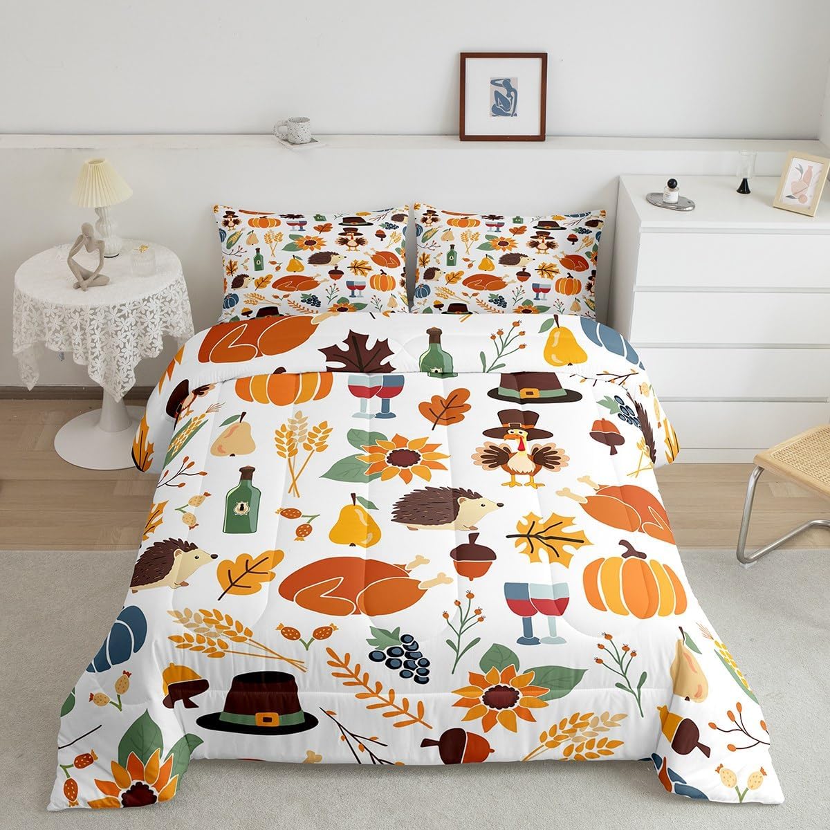 Welcome to our store. We have specialized in home textile for many years. We are committed to providing customers with comfortable products. Size Information Toddler size: 1 Down Comforter (42"W x 58"L) and 1 Quilted Pillowcase (30"W x 20"L). Twin size: 1 Down Comforter (68"W x 90"L) and 1 Quilted Pillowcase (30"W x 20"L). Full size: 1 Down Comforter (79"W x 90"L) and 2 Quilted Pillowcases (30"W x 20"L). Queen size: 1 Down Comforter (90"W x 90"L) and 2 Quilted Pillowcases (30"W x 20"L). King size: 1 Down Comforter (104"W x 90"L) and 2 Quilted Pillowcases (36"W x 20"L). Versatility We have many kinds of styles for you to choose. You can easily find a product that suits the style of your room. The item is not only fits your home (bedroom, guest room, living room, etc) or RV, but also a present for holidays or anniversaries (Christmas, New Year, Halloween, Thanksgiving day, birthday, etc) for people who you love (your families, friends, relatives, boyfriend,girlfriend). Modern Design The luxury aesthetic comforter set is made by reactive printing and dyeing process. The pattern is clear, the color is lasting and bright, which will not fade after repeated washing. No harmful chemicals or dye substance. Personalized As a manufacturer of digital printed home textiles, we follow current trends and bring you the latest and stylish home textile products. The item will make the room decorated in exquisite taste. We sincerely hope you'll love the bed set.