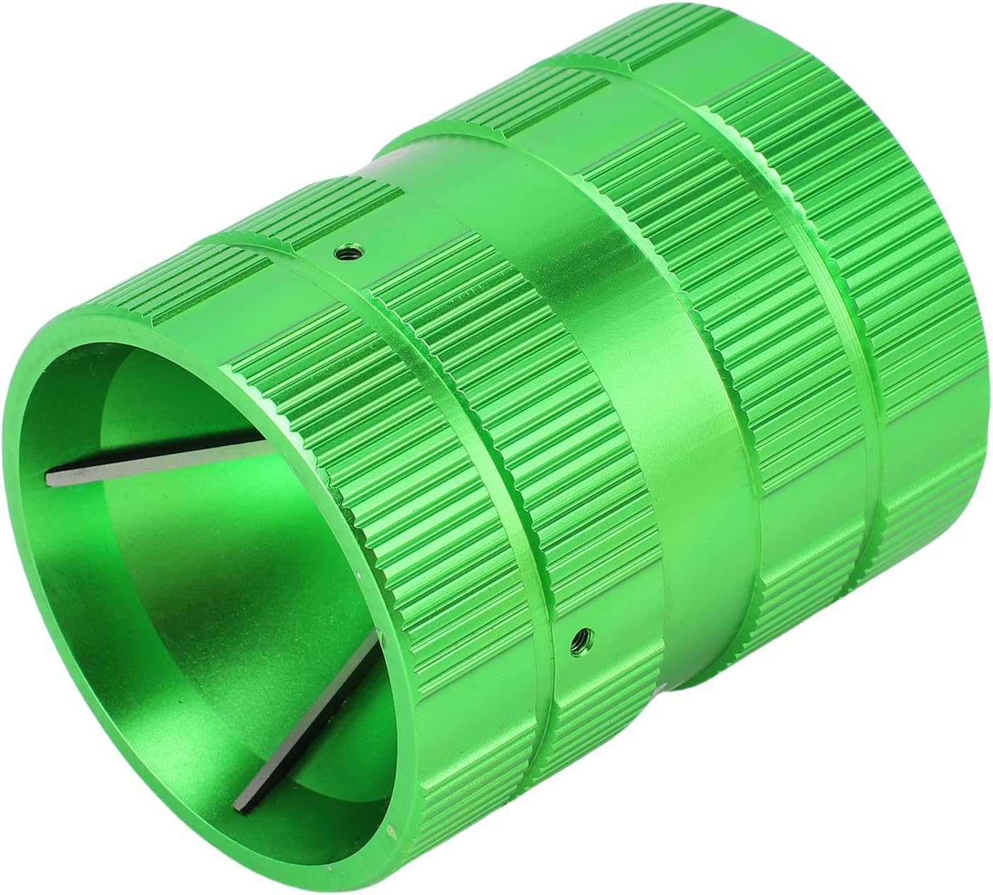Features: Efficient Deburring Action: This pipe deburring tool swiftly removes sharpness burrs from both copper and PVC pipe ends, creating smooth connections that are ready for secure fittings. Dual-Sided Carbide Blades: Our pipe reamer tool features four solid carbide cutters on each side, ensuring a clean finish on the inner and outer edges of your tubing with each pass. Sturdy Aluminum Construction: The robust aluminum alloy housing of this tubing reamer maintains its shape under pressure, offering a dependable and long-lasting performance for your projects. Wide Pipe Compatibility: Designed for pipes from 1/4 inch to 2-1/8 inches, this tool is a versatile solution for working with various sizes of plumbing and mechanical tubing. Compact and Portable: With its small size, this pipe deburring reamer easily fits into any tool bag, making it a convenient companion for on-site jobs or workshop use. Specification: Item Type: Pipe Reamer Tool Material: Aluminum Alloy, Hard Alloy Specification: For 1/4in to 2-1/8in Outside Diameter Diameter: Approx. 6.7cm / 2.63in Height: Approx. 8.2cm / 3.23in How to Use: Directly use. PackageList: 1 x Pipe Reamer Tool