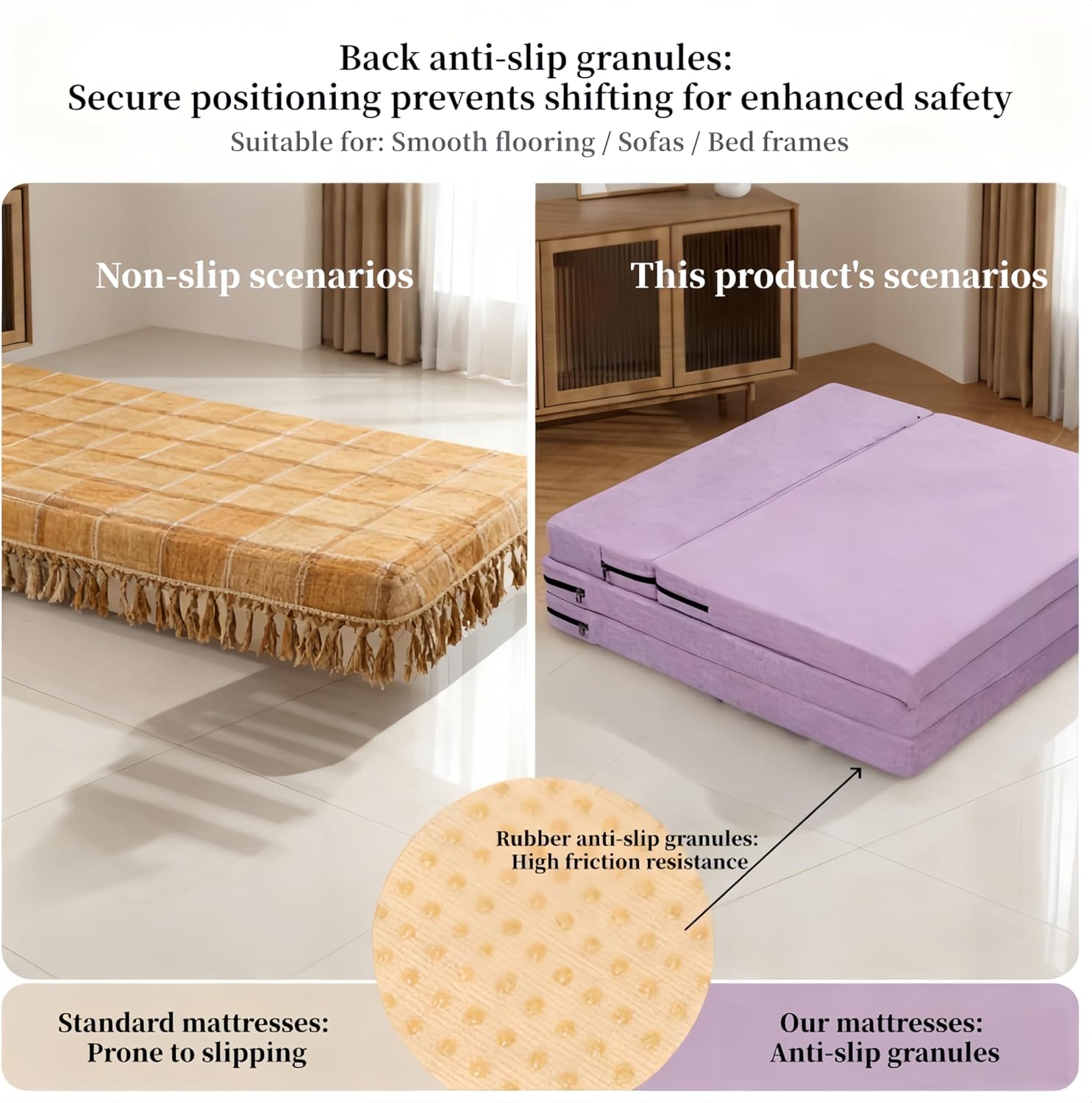 Four compelling reasons to choose this folding mattress: soft comfort, non-slip base, fatigue-free extended sitting, and rapid rebound.1. Thoughtful design for effortless folding and storageFoldable for compact storage and flexible placement2. Versatile placement, space-saving designFits seamlessly into unused corners of living rooms or offices3. High resilience and pressure resistance with thickened pearl cotton fillingSoft yet resilient with excellent support4. Sewn-in Name TagSecurely stitched, waterproof and durable5. Zipper Design for Removable WashabilityMetal zipper allows easy removal for washing, ensuring hygiene6. Rubber Anti-Slip Particles on Back for StabilityNon-slip texture prevents shifting during use7. One-Piece Folding for Portable StorageIncludes storage bag for effortless organisation and accessProduct Name: Multi-functional Folding MattressSeasonal Suitability: Spring/Summer/Autumn/WinterFabric: Premium Linen BlendFilling: High-density FoamProduct Dimensions:Unfolded Flat Dimensions: 200 × 60 × 5 cmFolded Pillow Dimensions: 180 × 60 × 5 cmRecommended Height Range: Under 180 cm