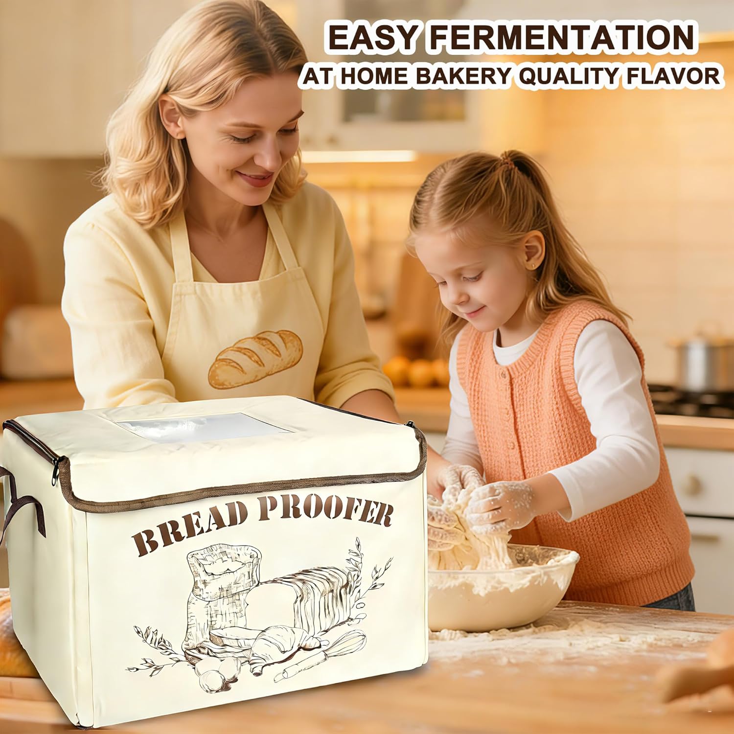 • Space-Saving, Foldable Design & Large Capacity: Designed for compact kitchens without compromising on capacity. When not in use, this proofing box easily folds down for convenient storage. Once opened, dough proofing box offers a generous interior (16" x 12" x 12") perfect for fermenting multiple dough batches or large bowls, making it ideal for both daily baking and entertaining