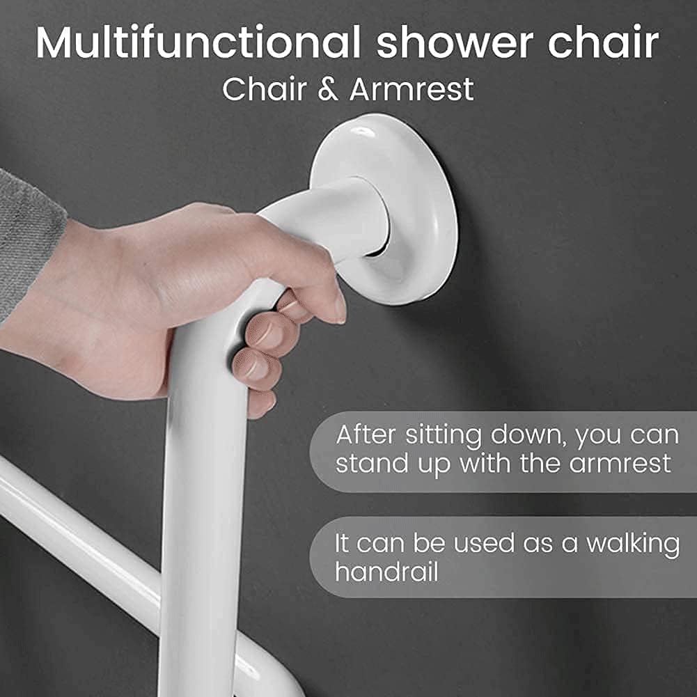 Folding Wall Stool Bathroom Shower Stool Foldable Chair Aisle Chair Wall Mounted Elderly Anti-Slip Shower Chair Stainless Steel Base Shower Seat Stool Properties: ▲ Retractable folding, intimate design foldable upturn function, can shrink and save space when not taking a bath, the bracket has extra space, can be used to hang the bath towel ▲ Strong ABS pipe sleeve and 4 stainless steel pipe columns, stainless steel pipe four wall support points, strengthen bearing capacity ▲ Easy to clean ▲ Can be used as a handrail Specifications: -Base material:stainless steel,ABS -Product use: shower room, shower room, shoe changing chair, entrance chair, toilet, etc. -Color: White -Size: 42*48*44 cm Package includes: 1 x wall mounted shower seat