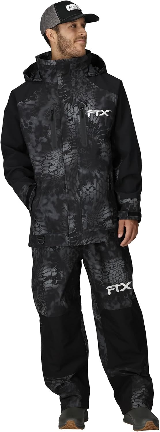 The FTX Elite Jacket is the perfect blend of style, function, fit and performance. The FTX Elite was designed for anglers by anglers with an abundance of comfort and functionality features throughout. All seams are fully sealed and reinforced, 2-way YKK front zipper with storm flap, attached adjustable hood with cord locks, fleece lined collar and face rise, twin vertical zip chest storage pockets, twin zip handwarmer pockets, dual accessory D-Rings, 360-degree hook and loop wrist adjustment with tunnel gasket.
