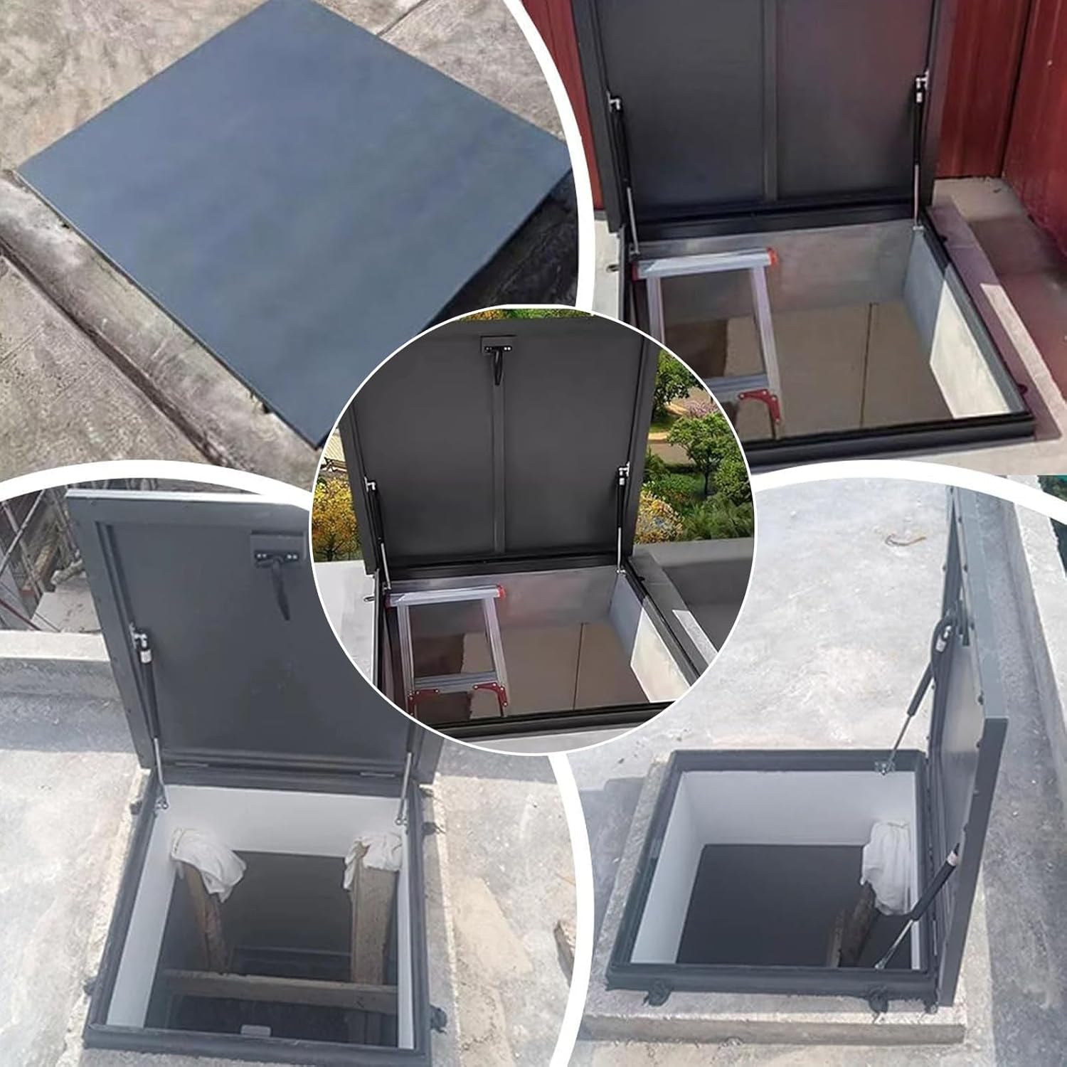 YUGXTH roof hatch steel anti-theft door offers enhanced security, preventing unauthorized access while still allowing easy entry for maintenance.Specifications:Name: Roof access hatch door, Skylight roof hatch, Escape hatch cover, basement exit cover, emergency access lids, wellhead cap, cellar cover, manhole coverMaterial: Galvanized Iron Plate, Aluminum FrameApplication scope: Roof/attic/sunroom/basementColor: Black , WhiteCustomized window requirements: The inner diameter of the window opening does not exceed 120cmWindow opening : Outward openingProduct accessories: With hardware accessoriesOpening angle: 90°Installation: Embedded installationMeasurement size: Based internal dimensionsDimensions: Width x HeiPackage includes:1 skylight + installation accessories (without glue)Note:1. Roof access doors can only be opened and closed from the inside, not from the outside.2. Please measure the opening size first and purchase according to the easured dimensions!3. Please wear gloves during installation to avoid scratches4. Minor errors can be 1cm error due to different batches and manual measurements5. There may be chromatic aberration due to the difference between the recording lamp and the display. Please refer to the actual product.