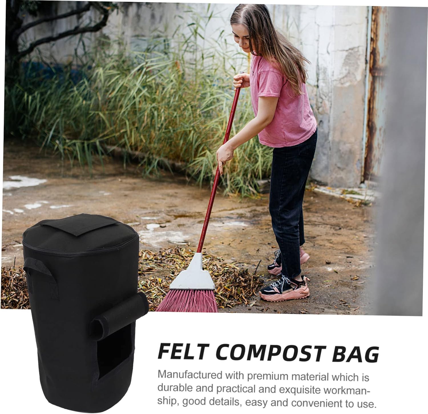 Package List 1 x compost bag Features -Material: Felt rotten vegetable bag. -Color: Black courtyard compost bag. -Size: About 80.00X45.00X45.00cm / 31.44X17.68X17.68inch creative bag. -Made of thick felt cloth, zipper opening and closing, easy to open and close compost bag. -Easy to use with double handles, convenient topper zipper and large window garden trash bin. -With a topper vent and a large side window, easy to put in and pour out felt compost bag. -It doesn’t take up too much space for storage and very convenient to use fallen leaves bucket. -Equipped with comfortable and thick strap handles, easy to dump trash reusable compost bag.Goods Description bag Designed with a lower window for easily pouring out trash.garden trash bag This leaf bag can help you clean the garden or yard, harvest fruits and vegetables, and organize indoor or outdoor items.creative bag Manufactured with which is and for use