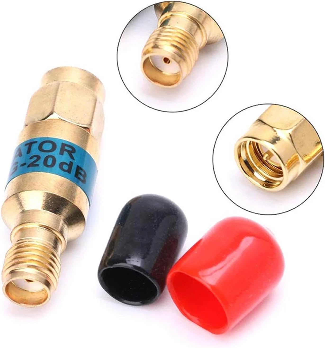 AttenuatorsDescriptionPower: 2WConnector: SMA-JKFrequency Range: DC-6GHzAttenuation: 1,2,3,5,6,10,15,20,30dB available, and 1-10dB.±0.5dB,15-30dB±1dBVSWR (MAX): 1.2:1Impendance: 50Temperature Range: -55°C to +125°CDimension: 29.5*9.5mmWeight: 8g==========Hign-concerned Chemical : NoneModel Number : BC-AT02-01Voltage : NonePower : 2WFrequency : 6GHzVSWR : 1.2:1Material : Brass Gold PlatedDependence : 50ohmAttenuation : 1-30dB