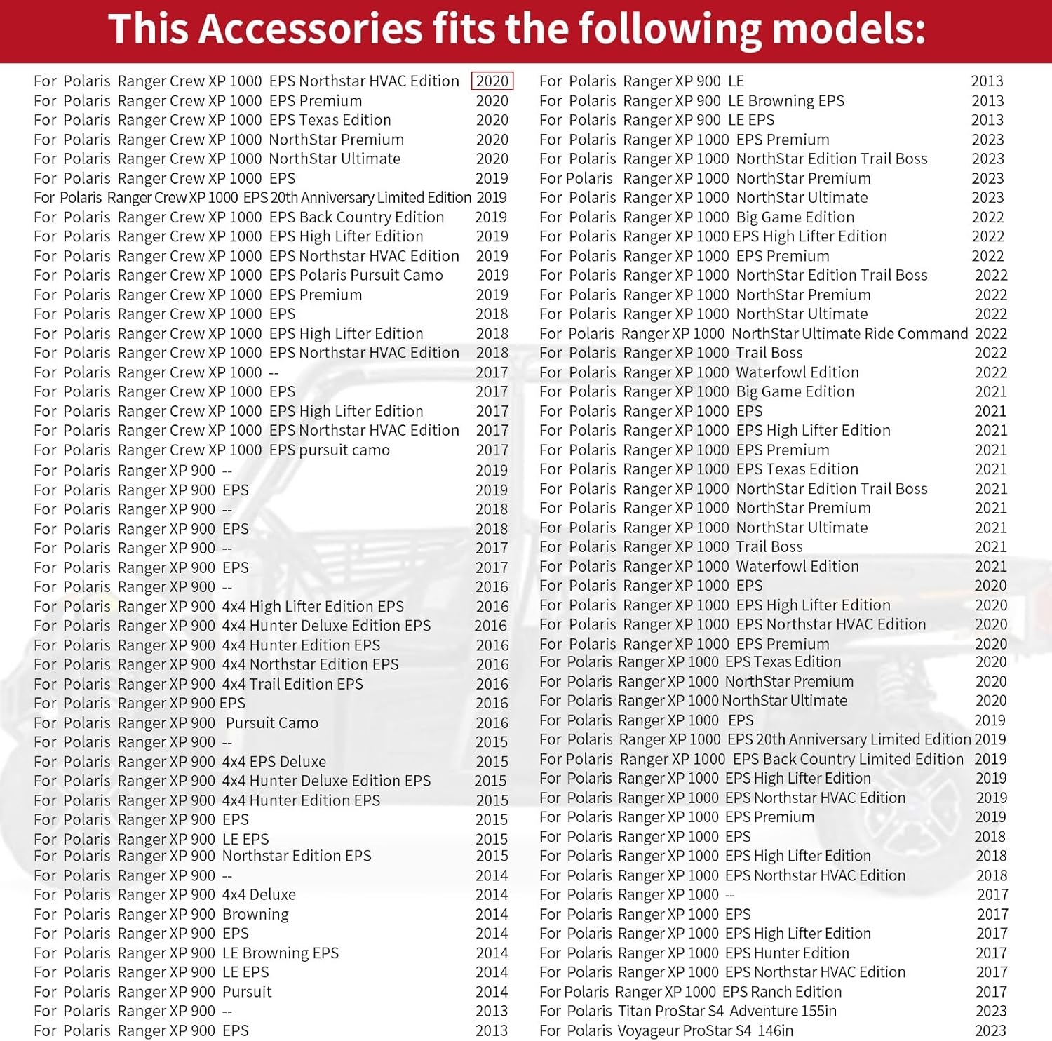 | Compatible with Vehicle Type | UTV |