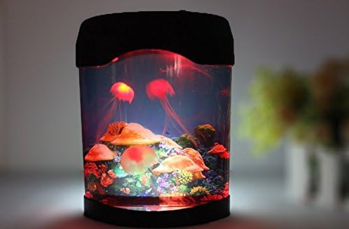 LED bulb inside.It can change the colors automatically when it is on This night light have the soft,gentle light sooth your mind With its company,you won't feel lonely any more Very good application to bedroom,home,bars,cafes,restaurants,wedding,party They are also perfect lighting tool at night.Let your night be full of brightness! How to use: 1.add water to the tank and a few drops of liquid dish soap to the water (getting your jellies to swim about properly) 2.soak the jellyfishes in the water for about one or half day 3.take out the jellies and pour out the water,add fresh water to the tank of top scale 4.place the jellyfishes into the water tank after washing,add a few drops of liquid dish soap to the water 5.cover the lid Powered by:3 x AA batteries (not included)/USB charging Press the ON/OFF button,the light begin to work in automatic color mode Press the LIGHT button to change the light color mode Material:ABS+silicone(artificial jellyfishes)+electronic components Type of Bulb:LED Size:8.46 x 3.94 x 9.06inch Package: 1 x aquarium light 1 x USB cable