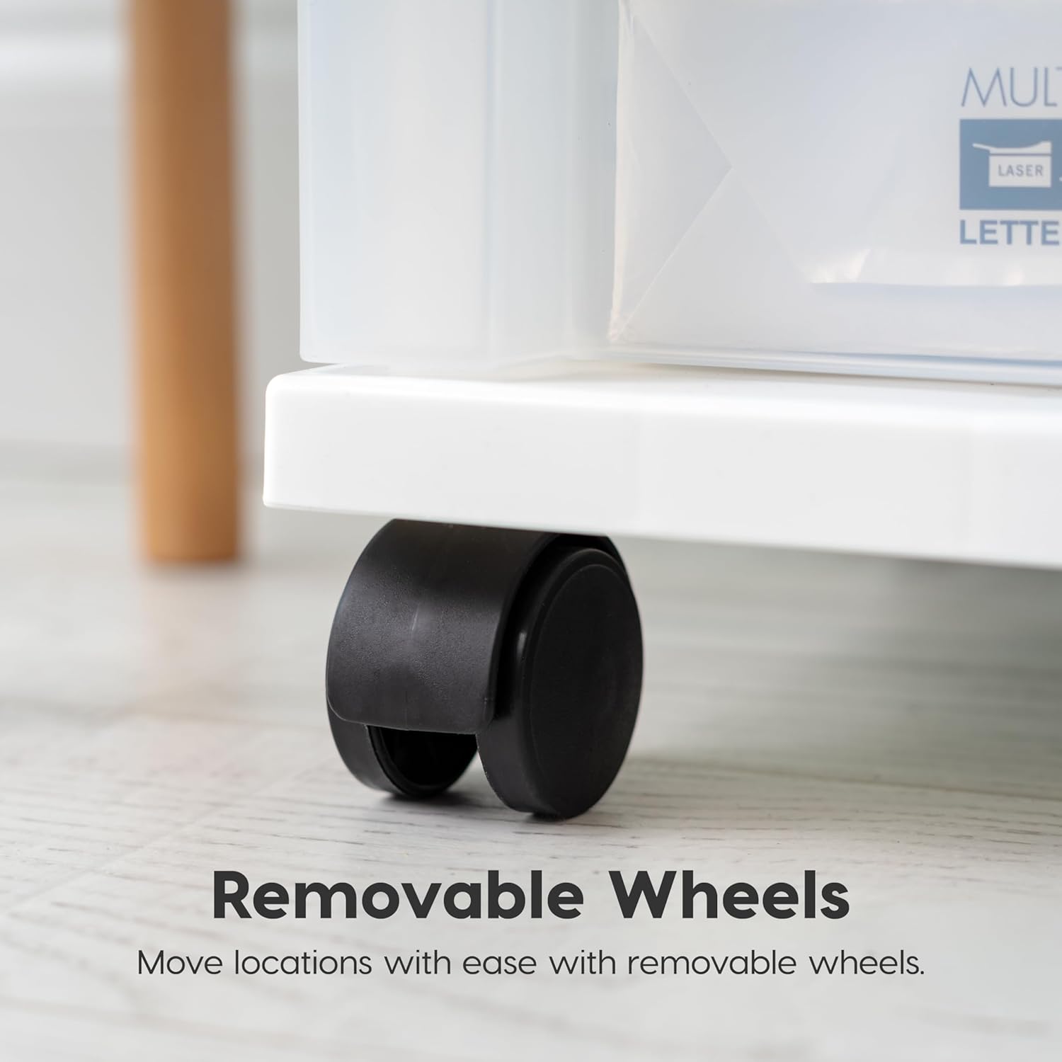 IRIS USA Storage Drawer Cart IRIS USA Drawer Cart offers a practical storage solution for any room of the home. Organize and store a variety of household items that are frequently used in the bedroom, kitchen pantry, bathroom, craft room, nursery, or dorm room. It could be used to store important documents, paper, files, or stationaries at the office. Clear drawers allow contents to be easily identified while keeping them neat and contained.Drawer stops prevent drawers from being removed accidentally. Use the included casters to create a rolling storage option allowing you to easily transfer the unit from room to room at your convenience. This black drawer cart has a multi-purpose use and is a versatile storage option for any room of the home. It's Ideal for controlling clutter and keeping living spaces neat and organized.The cart’s top lid is designed to organize small parts for easier accessibility. This could be used to place pens, paperclips, paper and so much more. IRIS USA Plastic Drawer Carts are made in the USA. All of our products are Green-circle certified. We can organize our home and protect our Earth at the same time!