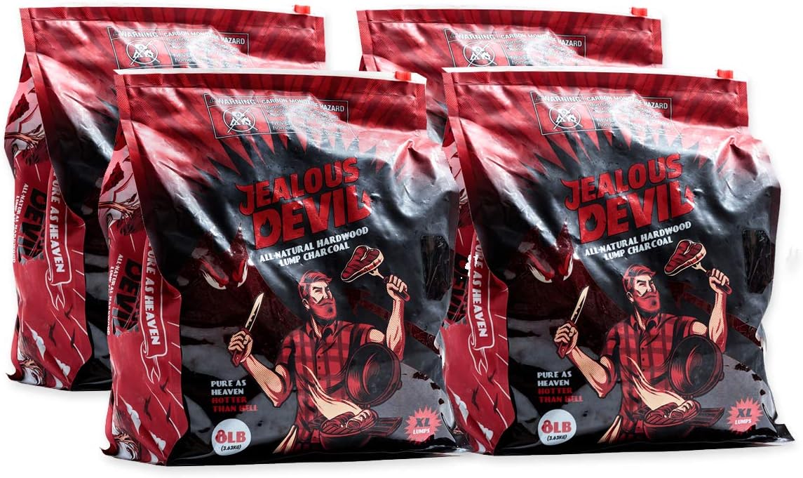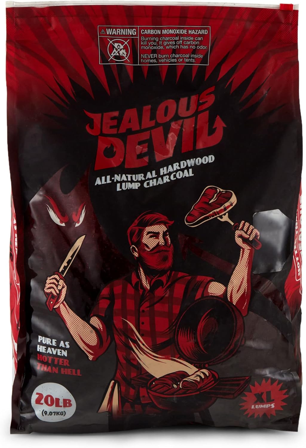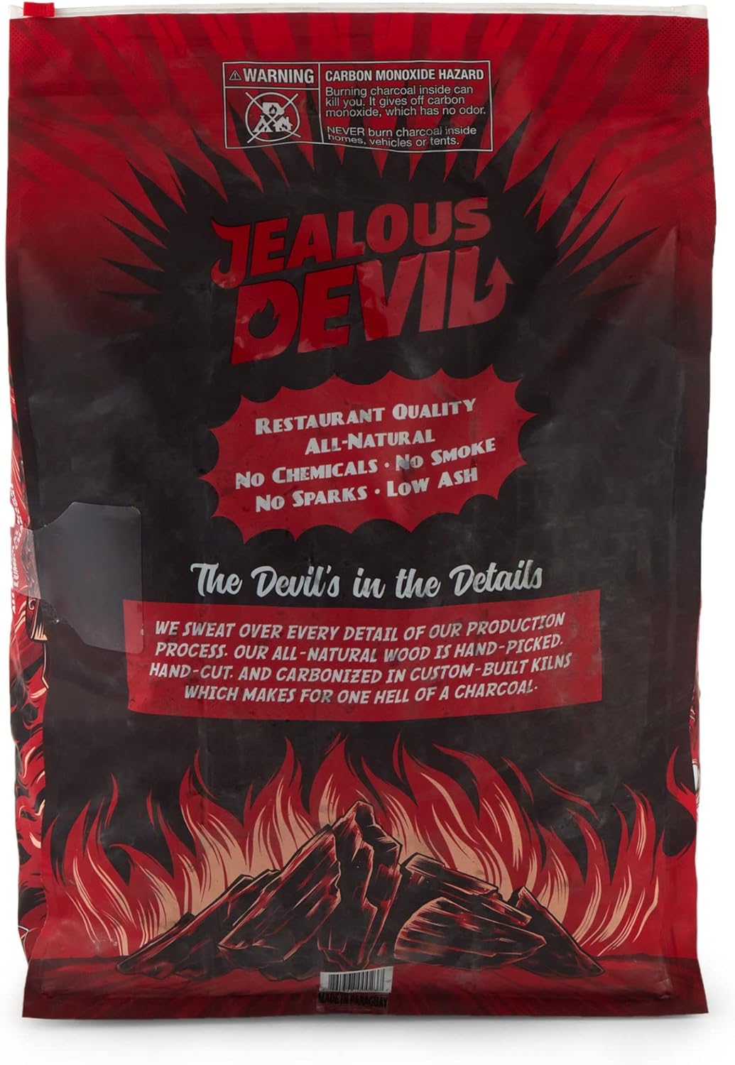 Jealous devil 100% natural hardwood lump charcoal is made from the dense "axe breaker" hardwoods of Paraguay. Only hand selected pieces make it into every bag to ensure that you get the very best charcoal you can find. Our charcoal lights very quickly and is ready to grill within 15 minutes. It burns very hot, searing the meat and locking in the flavors, and it lasts longer than any other charcoal you can buy. Our charcoal is 100% natural - there are no chemicals, fillers, or scrap wood - we only use the best. Our charcoal also has a very mild, almost non-existent flavor profile allowing you to cook steaks, poultry, and even fish without compromising the flavor of your food. Taste what you cooked, not what you cooked it with! Jealous devil is also used by a number of premier restaurants around the globe. Jealous devil is produced sustainably in cooperation with the Paraguayan government and other organizations to ensure continued reforestation.