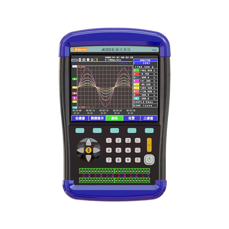 Sampling rate: 500ms, 8GB memory. Supports voltage, temperature, humidity, pulse, and current signal inputs.