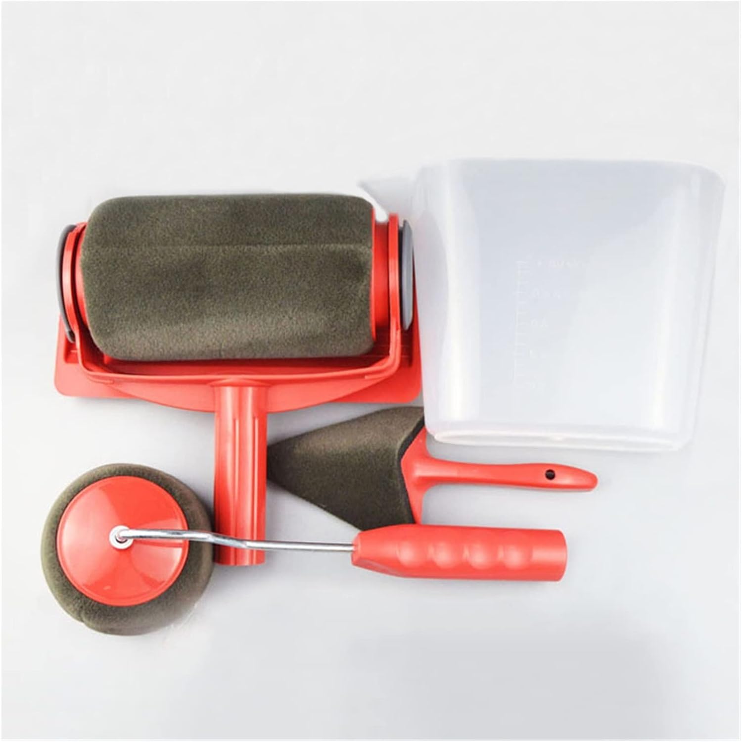 Multi-Specification,We have different kits to satisfy your needs. You can use them to handle any family wall painting work.Strong Applicability,There is no restriction on wall texture, any wall can be painted.Leakage-Free,No water leakage, and more paint can be dipped, saving time and effort.When you slide around fixtures and curves, you don't need tapes to get lines. And these tool can be easily applied to the lines and corners of the gap.High Efficiency,The paint pad is 8 times higher than the traditional paint brush and 5 times higher than the traditional paint roller.Specifications:Name: Painting Roller BurshMaterial: PP + Sponge + Flocking + Stainless SteelLarge Roller Brush Size: 20x21x8.5cmSmall Roller Brush Size: 12x9.53cmTriangular Brush Size: 8x5x20cmMeasuring Cup Size: 21x9.5x15cmTray Size: 22x12x2cmPackage Incudes(option):1Pcs Paint Roller1Pcs Wheel Brush1Pcs Corner Brush1Pcs Paint Bucket1Pcs Resting TrayNotice:1. Due to the light and display monitor difference , the color may have a little difference with the actual color;2. Due to manual measurement, please allow 2-3 cm size error.Great tool for painting and varnishing, suitable for use on walls, floors, ceilings.