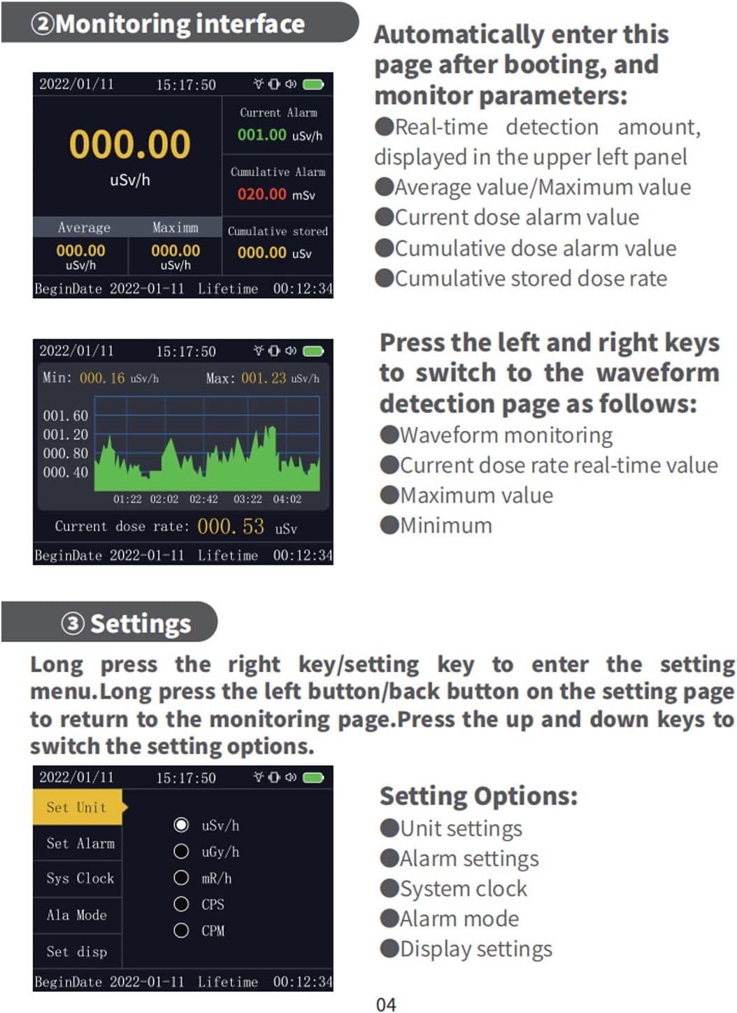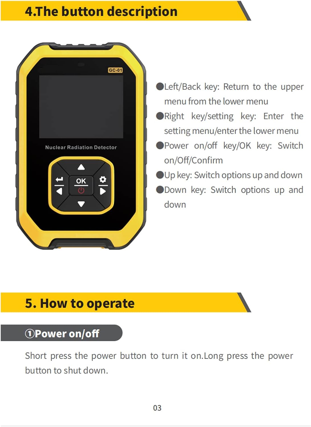 Counter Nuclear Radiation Detector Marble Radiation Ionization Dose Alarm X β γ Tester Real Time Monitoring electromagnetic nuclear radiation detector marble radiation ionization dose alarm Features: Small and compact, lightweight, easy to carry with. Real time monitoring, care about every second of safety.v High capacity 1200mAh battery, long , type-c charging. Widely used for marble, imported products, cosmetics and more. Set the alarm value, auto alarm when the set value exceeded, make radiation visible and make life more secure. Specifications: Material: Plastics Size: Approx. 120x78x27mm/4.72x3.07x1.06in Package Includes: 1x Counter Note: Please allow 1-2cm errors due to manual measurement, make sure that you do not mind before you order. Due to the difference between different monitors, the picture may not reflect the actual color of the item.