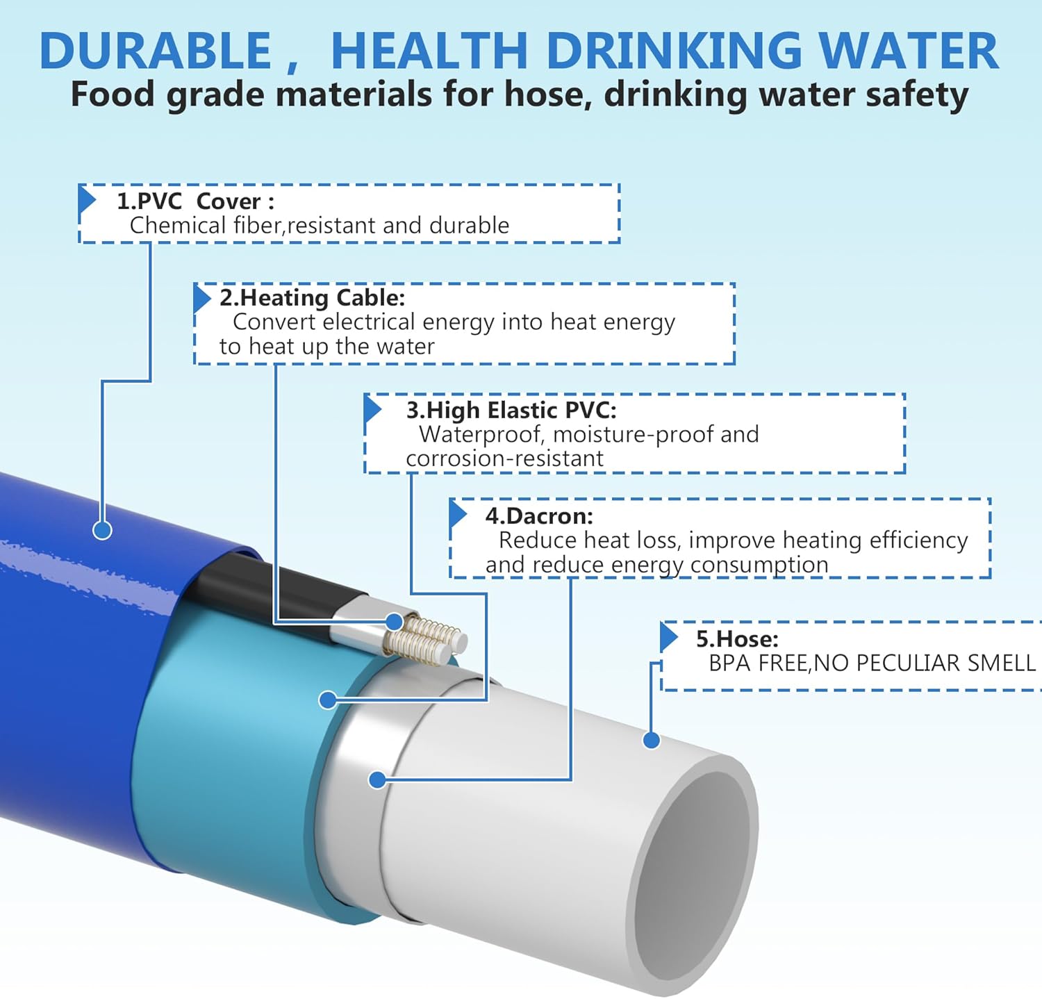 Heated water hoses of different sizes can be purchased together to meet different distance requirements.