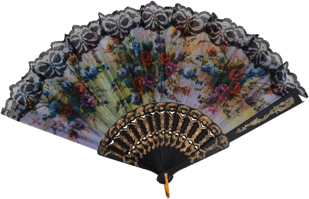 Lady Plastic Rims Flower Pattern Lace Edge Decor Dance Folding Handheld Fan 10 PcsThis foldingfan is constructed with plastic ribs, lightweight for convenient carrying in your handbag.Nice gift for girls or lady use in the summer day or as a dancing hand fan.It is elegant for wether home decoration or stage performances.