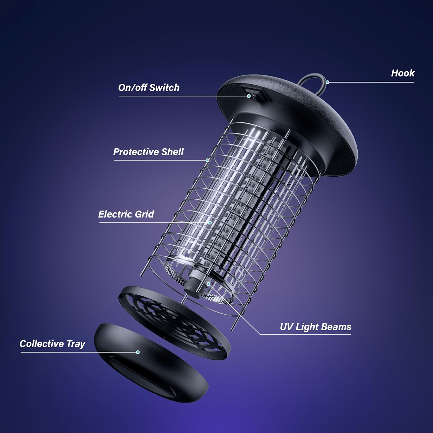 LED Bug Zapper for Indoor and Outdoor Use, Long Lifespan, Extended Power Cord, Waterproof Design, High-Voltage Mosquito Zapper, Fly Trap and Insect Killer