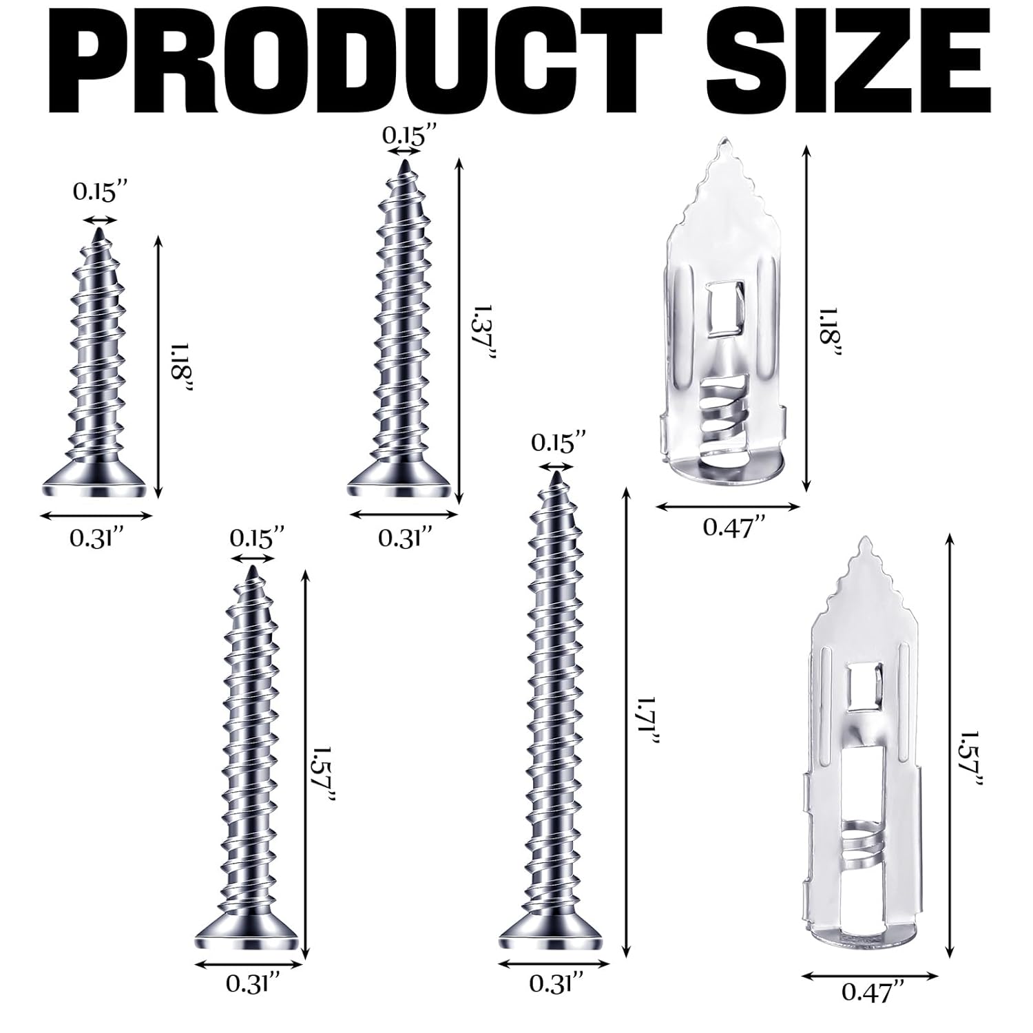 Features: User friendly design: Created for both DIY enthusiasts and professionals, these anchors and screws blend efficiency with simplicity. The intuitive design streamlines your projects, making it easier for anyone to achieve secure, professional grade results at home. Strong and secure fixation: Designed with precision, the self drilling anchors screw kit maintain strong grip strength, ensuring no sudden detachments. This safety feature makes them ideal for securely hanging delicate or valuable items, offering peace of mind in every installation. Specifications: Material: galvanized steel Color: sliver Size: as shown in the figure Package includes: 490 x Self drilling drywall anchors screws Notes: Manual measurement, please allow slight errors on size. The color may exist a slight difference due to different screen displays.