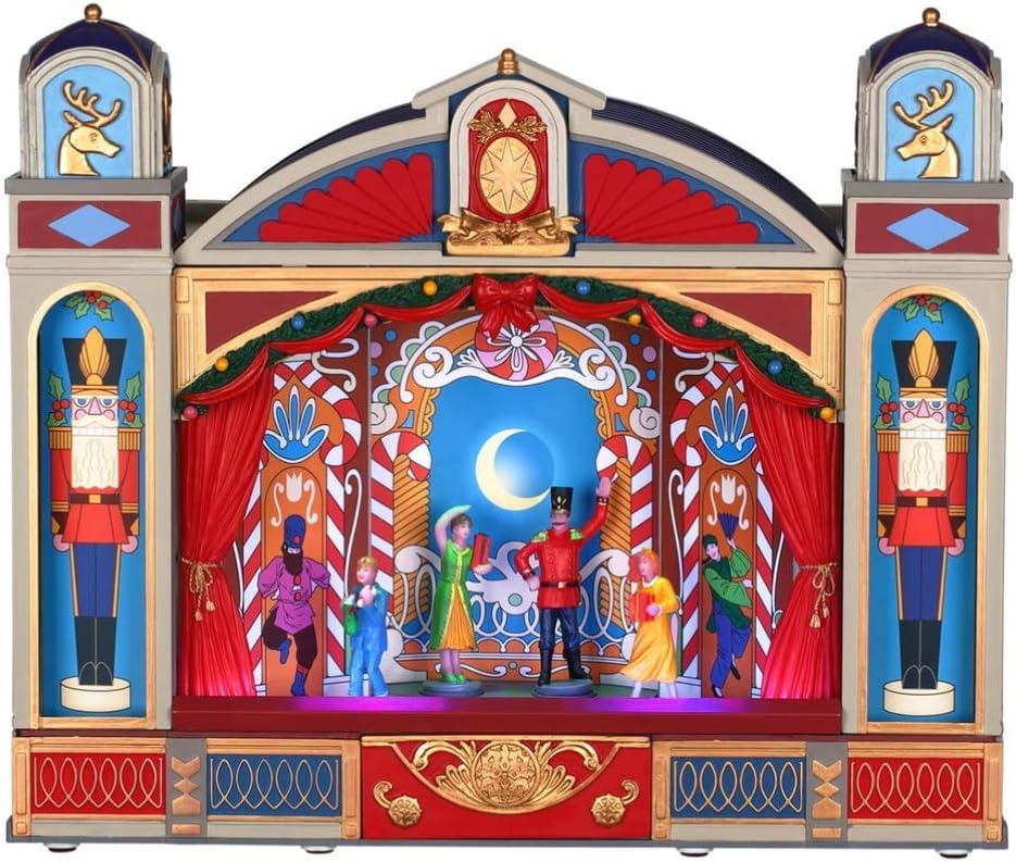The annual Christmas ballet has arrived and villagers have been rehearsing for months! Old-fashioned designed theatrical stage with gold accents, features picturesque Christmas backgrounds to reflect the theme of the ballet.