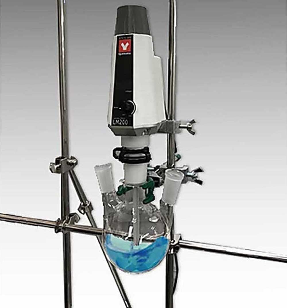 Compact design laboratory flask mixer features integrated drive and stirring seal allowing direct installation of flask and stirring in a vacuum and sealed state. No time-consuming shaft alignment required. Its strong stirring power is perfect for samples of high volume and high viscosity.
