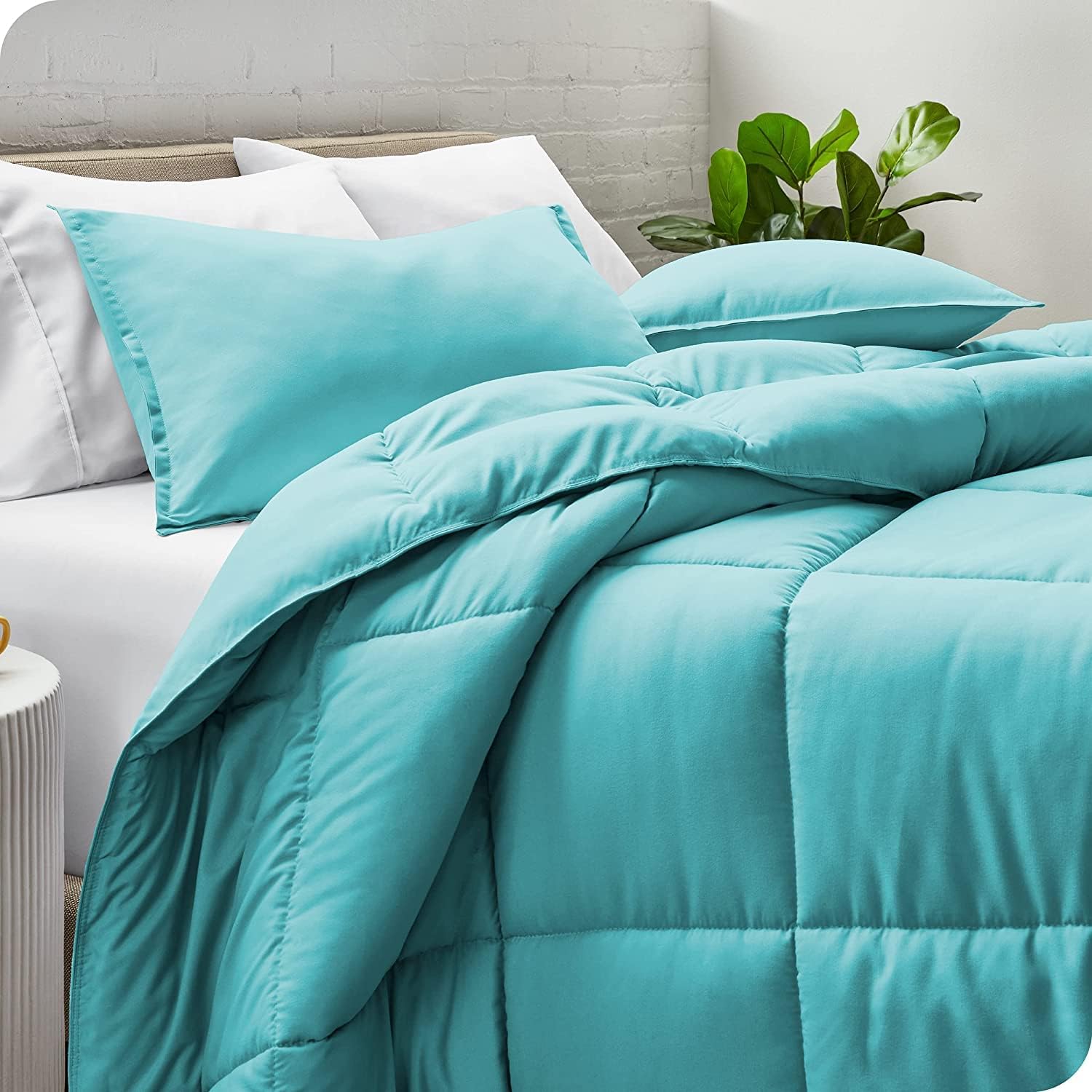 The comforter’s box stitching prevents the filling from shifting, which helps ensure an even layer of thickness throughout. The box stitching extends from one end to the other, providing a neatly tailored look.