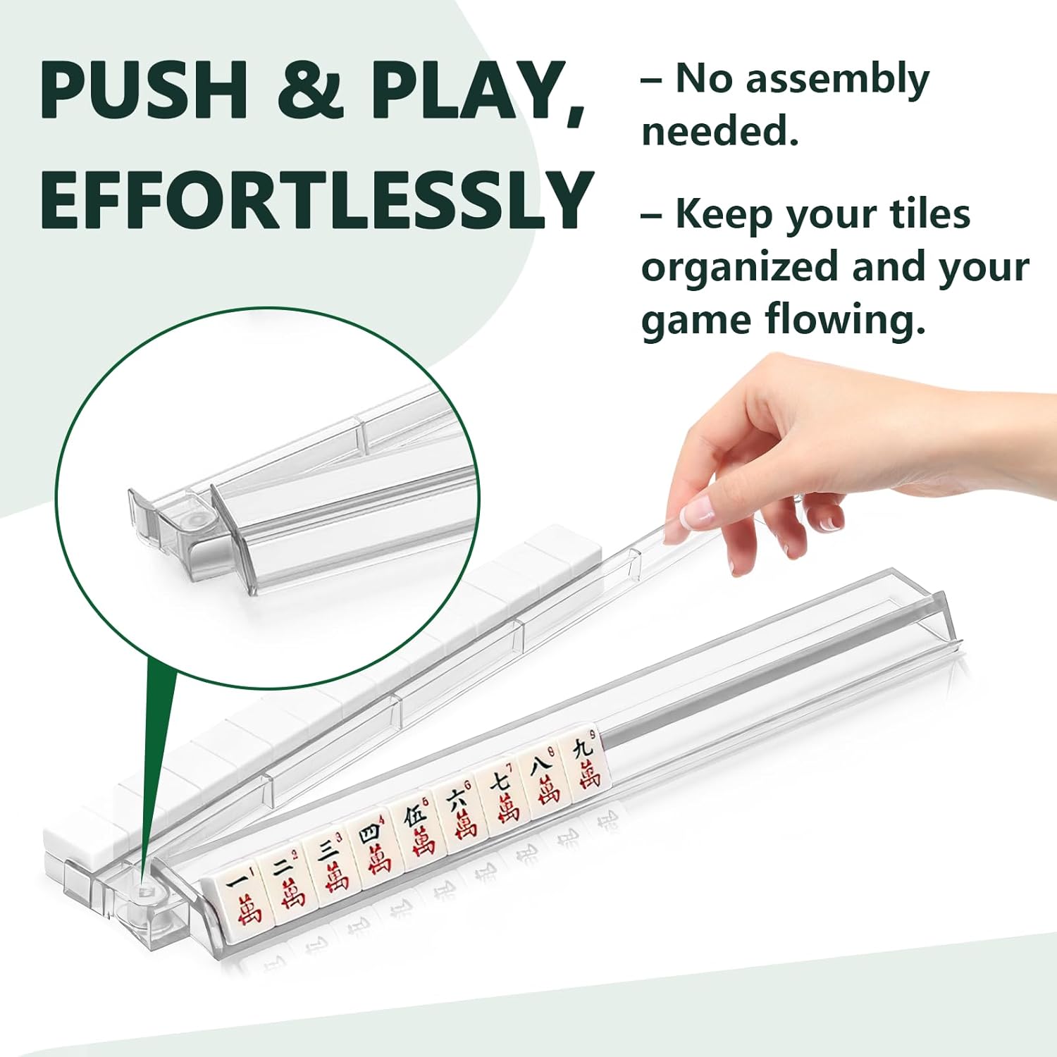 | Included Components | 4 dice, 4 mahjong tile racks with pushers |