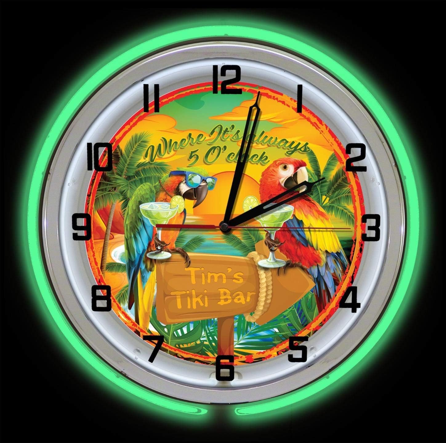 This brand new ready-to-hang neon clock makes a perfect addition to any garage, bar, game room or man cave! Our clocks are lit with two double neon tubes, one color for the outside and one bright white on the inside. Clock motor contains a high-precision quartz movement and sweep technology making it smooth and quiet with no "tick-tock" noise. Inside image is a printed high quality graphic. Have an image or business logo you'd like to add to the clock? We can do customizing upon request. Whether you want a gift with a "wow factor" or compliment your own home/shop, our neon clocks will impress! Because these items are personalized we do not offer refund options as the clock can not be resold.