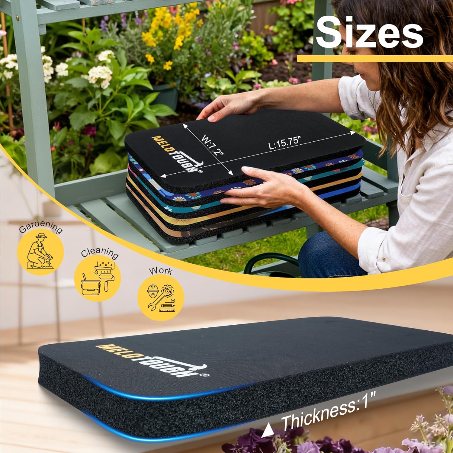 MELOTOUGH Bucket Caddy Organizer Bucket Tool Organizer for Garden Tools Fit 3.5 to 5 Gallon Bucket (Green) + MELOTOUGH Garden Kneeling Pad, 1" Thick Soft NBR Foam Kneeling Pads for Gardening, Cleaning, Work - Lightweight & Comfortable, 15.75"x7.2" (Black)