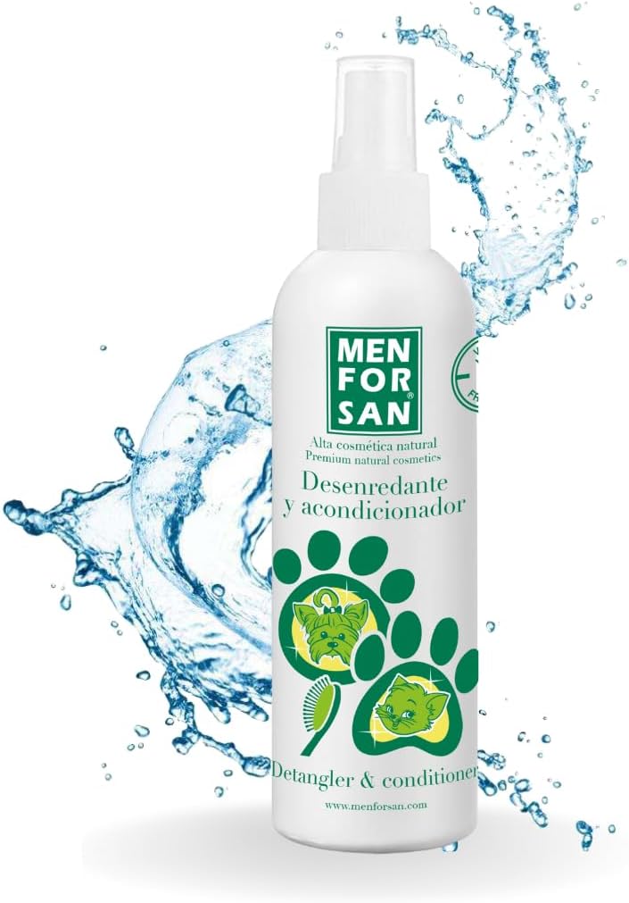 Powerful detangler and conditioner for dogs that provides jerk-free brushing. Conditions and enhances the shine of the fur, providing silkiness and volume. It gets rid of all kinds of tangles and prevents breakage of the fur. Promotes brushing and eliminates static electricity due to its non-greasy conditioning effect.