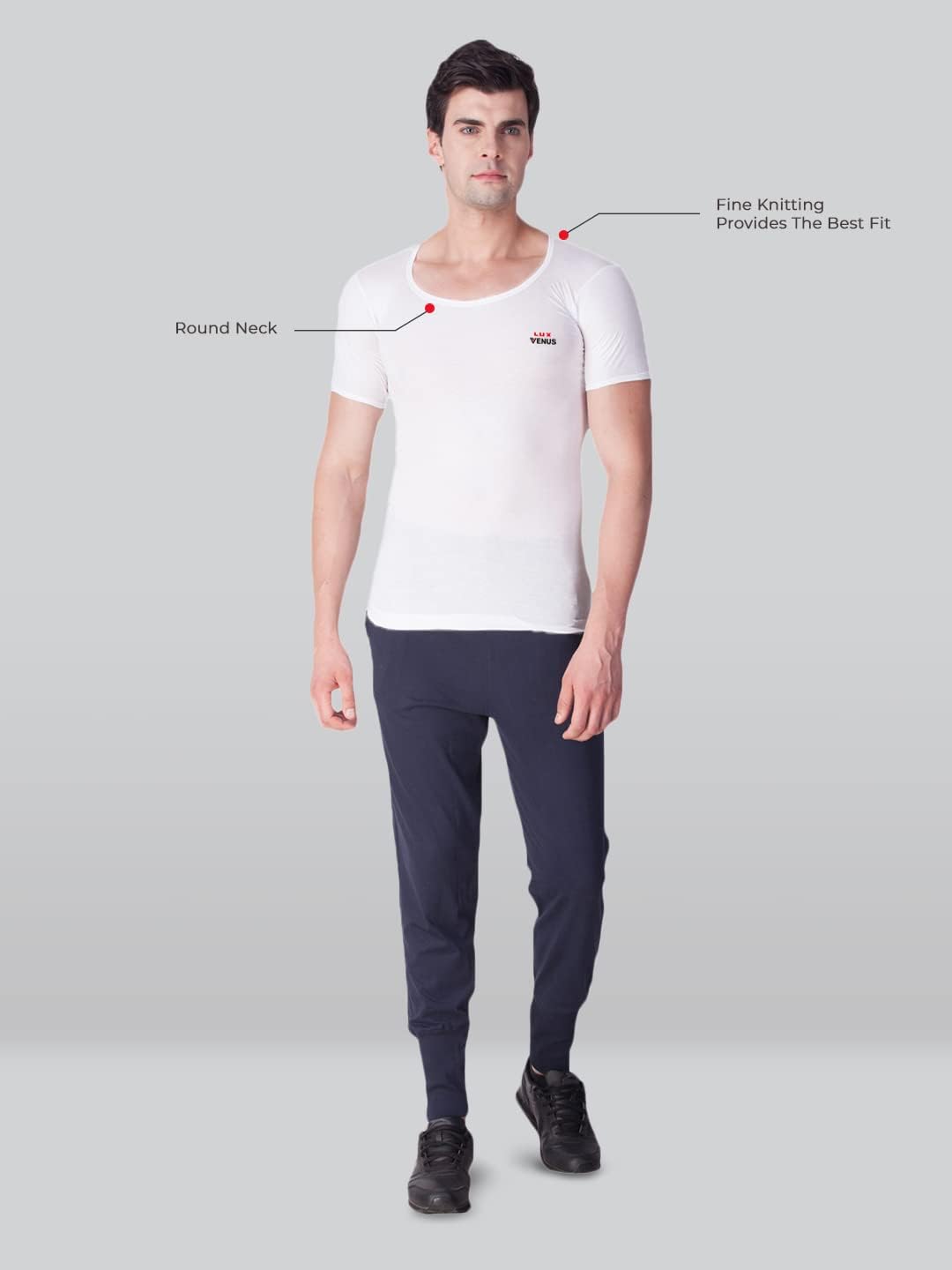 Lux Venus Vest made from 100% finest cotton. Fine fabric provides a better fit. Offers unparalleled comfort. Deep Crew Neck Extended length for easy fit. Lux Industries Ltd, 28/1 GF, BT Road, Kolkata 700002
