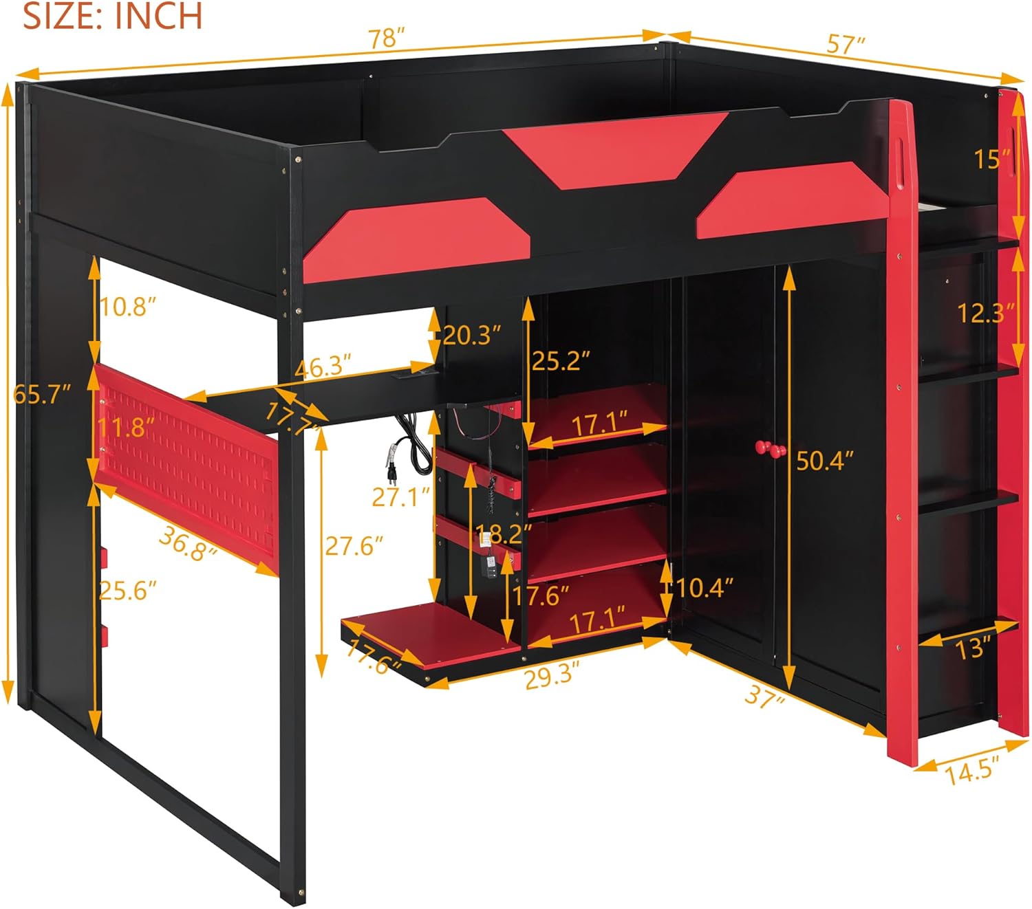 | Other Special Features of the Product | Full Size Loft Bed with Height-Adjustable Desk & CPU Stand & Storage, No Box Spring Needed |