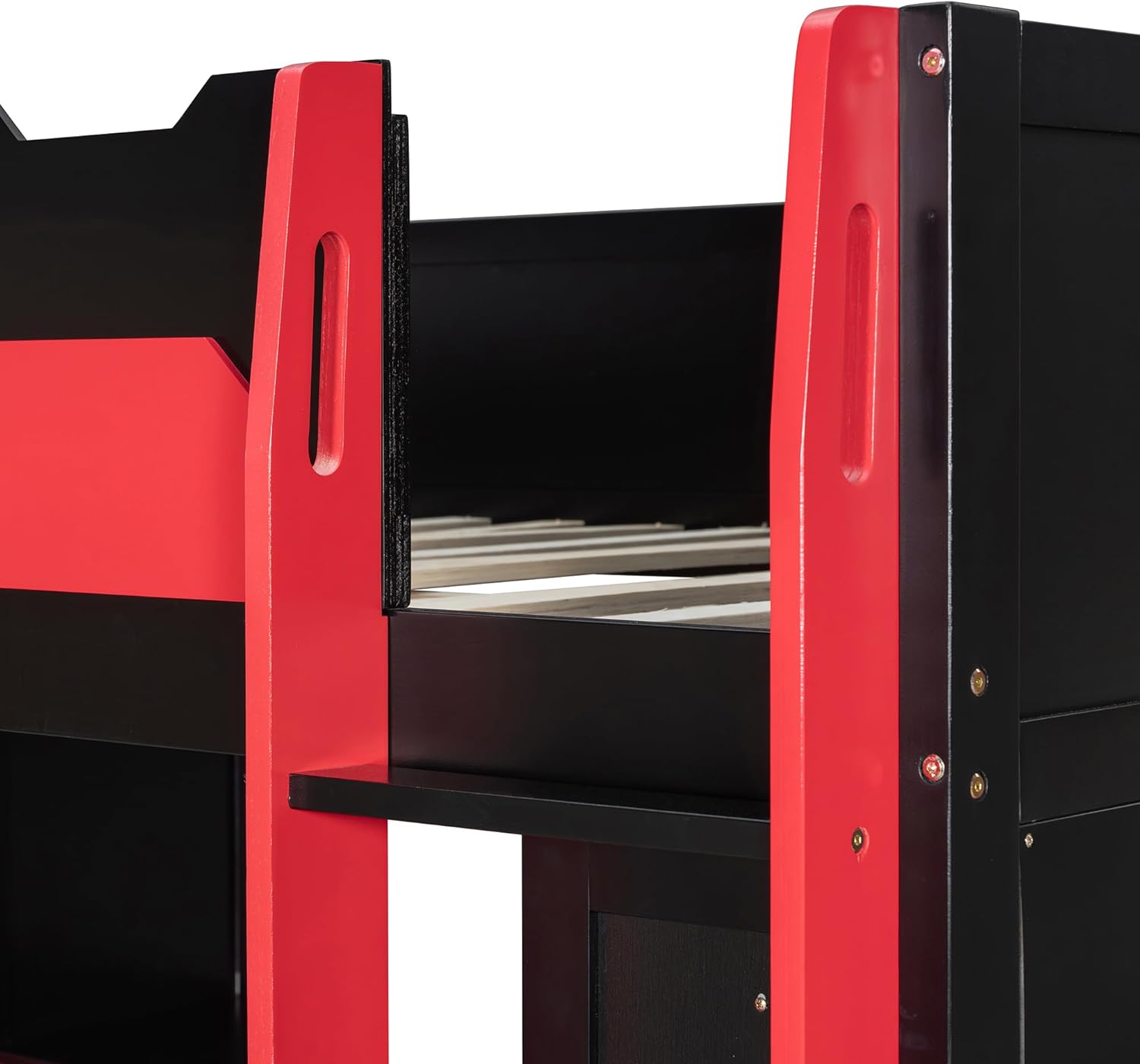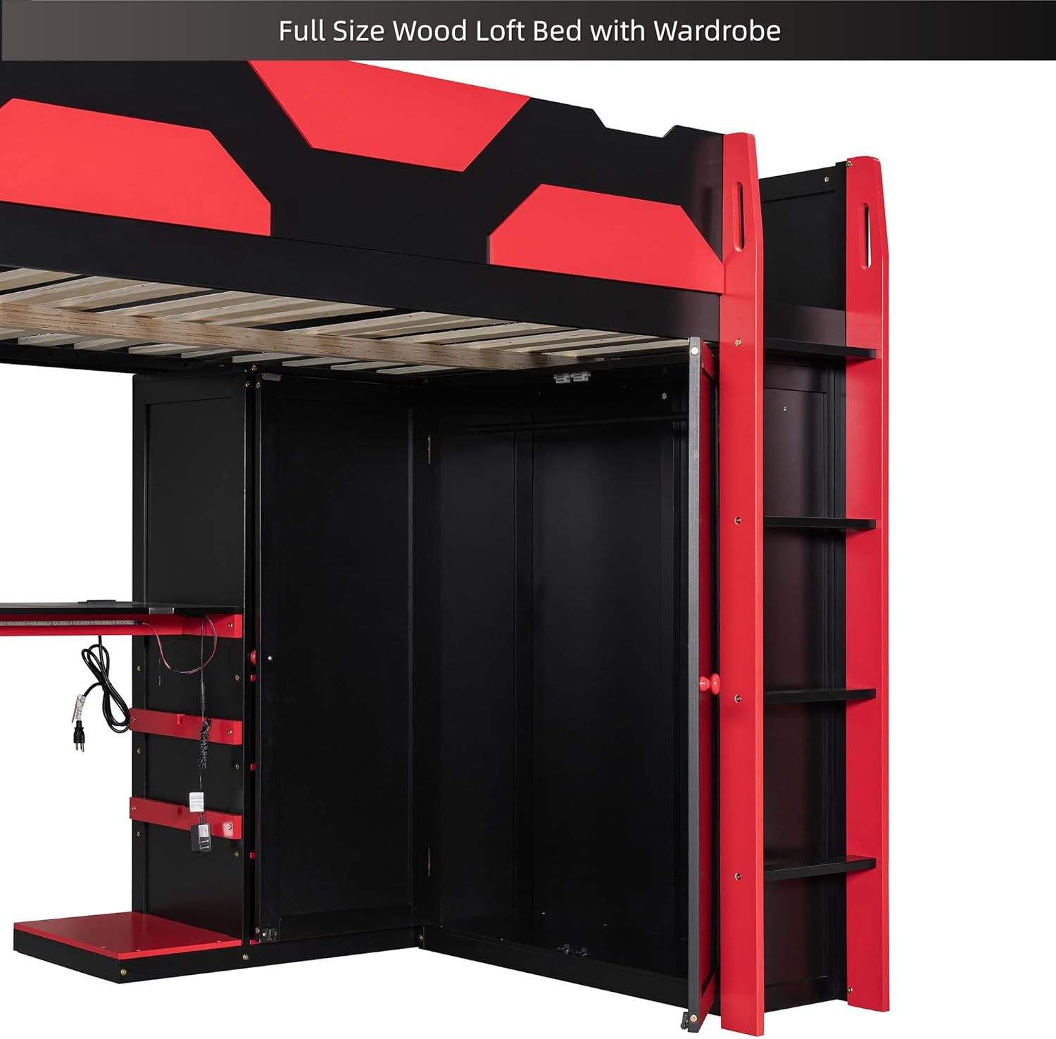 | Item Type Name | Wardrobe, Sturdy Wood Gaming Loft Bunk Bed Frame with USB Port & Led Lights & CPU Stand, Space-Saving, Red |