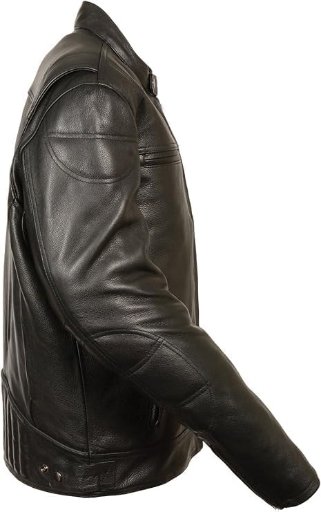 Men's Clean Look Leather Motorcycle Jacket w/ Lower Back Quilting & 2 Inside Gun Pockets