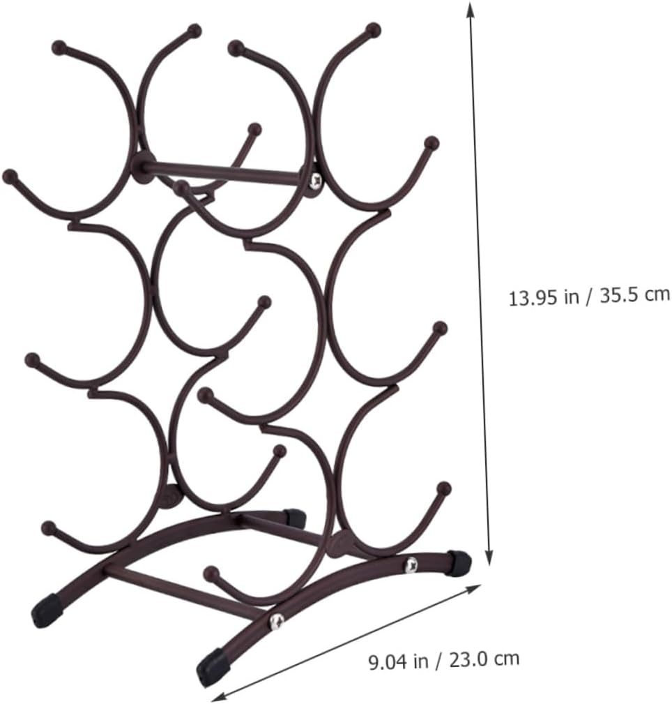 Package List 1 x Wine Rack Features -Product Info:Red wine rack - Material:Iron - Very suitable for interior decoration: parties, restaurants, cabinets, bars, kitchens, dining tables, etc iron wine holder. - Size: 35.50X23.00X16.00cm/13.95X9.04X6.29in - ColorDark Brown - Modern style design, this wine bottle holder can display your wine more completely metal wine storage display shelf. - The edges are smooth and round, without burrs, and this wine bottle holder will not damage the skin suspended wine rack. - Help you organize the wine bottles in the kitchen for easy storage, and keep your kitchen tidy countertop rack holder. - This wine bottles rack is convenient and practical for lasting use. It can be used in daily life wine displaying stand.Goods Descriptioniron wine bottle holder Excellent workmanship with modern style design.beverage storage rack This stylish wine bottle rack is simple and can store wine bottles.rustic wine bottle holder Show your wine in a stylish style! This wine rack is the perfect centerpiece of your wine cellar or dining table