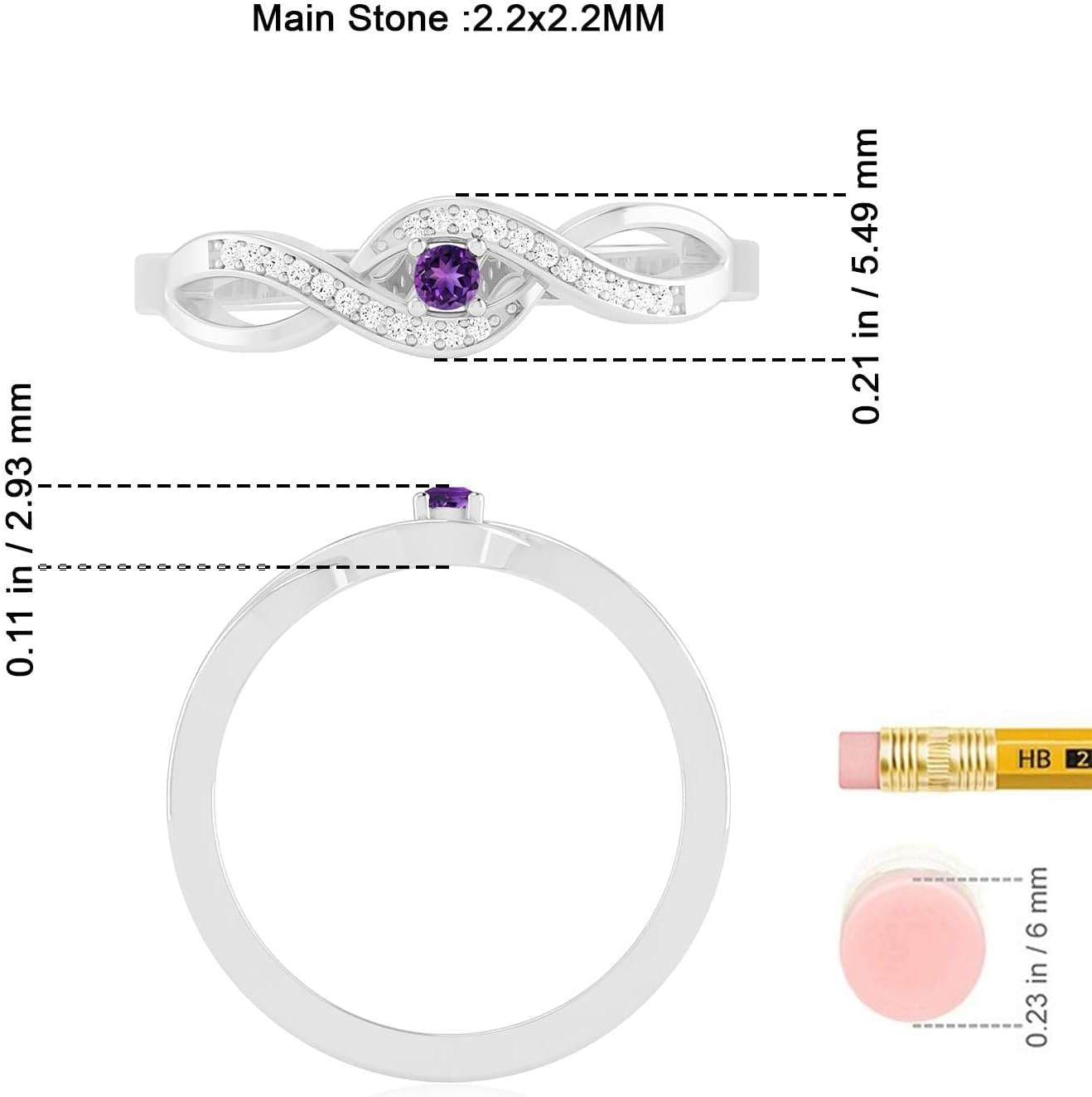 Celebrate love, elegance, and meaningful symbolism with this beautifully crafted Natural Amethyst Infinity Ring. Featuring a rich purple natural amethyst gemstone at the center, this ring represents passion, clarity, and the timeless meaning of the February birthstone. The delicate infinity-shaped band is adorned with sparkling lab-grown diamonds, adding a touch of brilliance while enhancing the ring’s graceful and modern design. The open infinity twist symbolizes everlasting love, balance, and connection—making this ring perfect as a promise ring, friendship ring, anniversary gift, or elegant everyday accessory. Crafted with precision in your choice of 14K rose gold, yellow gold, white gold, or high-polish 92.5 sterling silver, this ring combines durability, comfort, and classic style. Lightweight and dainty, it pairs beautifully with other rings for stacking or shines on its own as a minimalist statement piece. Whether you’re gifting someone special or treating yourself, this amethyst infinity ring brings timeless beauty and heartfelt meaning to every moment.