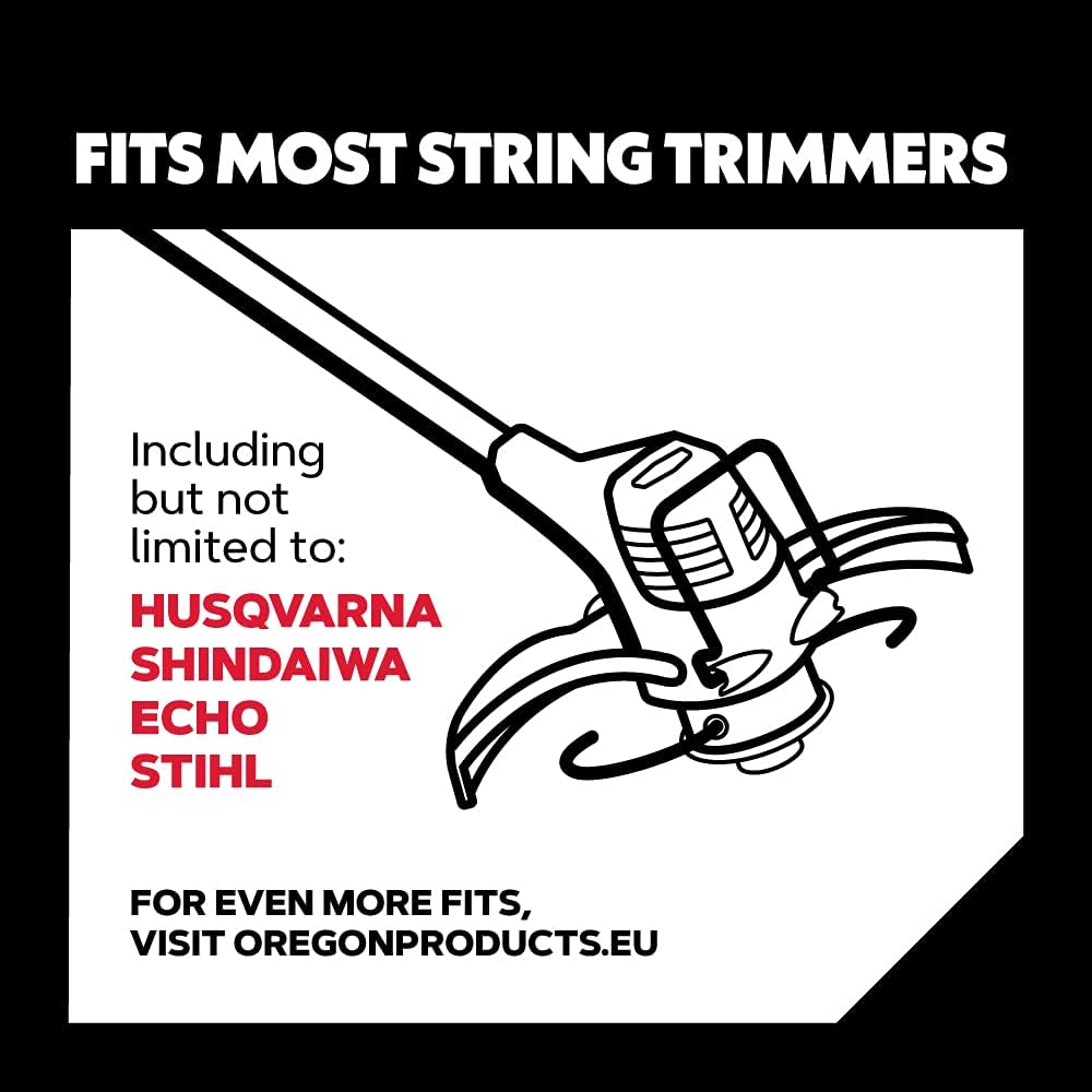 Oregon professional-grade Nylon trimmer Line offers excellent resistance to welding, with high fray resistance in all weather conditions. The round line is suitable for the widest range of cutting applications, and is recommended for light trimming of medium to long grass, as well as tackling thick vegetation and weeds. The heavy duty line is ideal for professional users and contractors. Made from hard-wearing, wear resistant and long lasting flexible material, the replacement trimmer line is universal, so it’s designed to fit standard trimmer heads. Offering excellent value, it’s a suitable economy option made from tough and durable 2.4mm nylon wire on an 88 meter long spool. Includes 1 x Oregon Yellow Round trimmer Line for grass trimmers and brushcutters. Roll length: 88 meters, line thickness: 2.4 mm, profile: round. Available in a wide range of diameters, from 1.3 mm to 4.5 mm, and in different lengths as well as square and star shaped profiles. About us: 1946 ushered in a better way of woodcutting when logger Joseph Buford Cox realised how easily timber-beetle larvae can chew through timber, creating the first revolutionary Oregon saw chain that duplicated their alternating C-shaped jaws in steel. From the invention of modern saw chain to research innovations that reduce injury-causing kickback, Oregon has always been the industry leader. There’s a reason why we’re the world’s number-one in saw chain, guide bars, sprockets, forestry accessories, lawnmower blades and outdoor equipment parts.