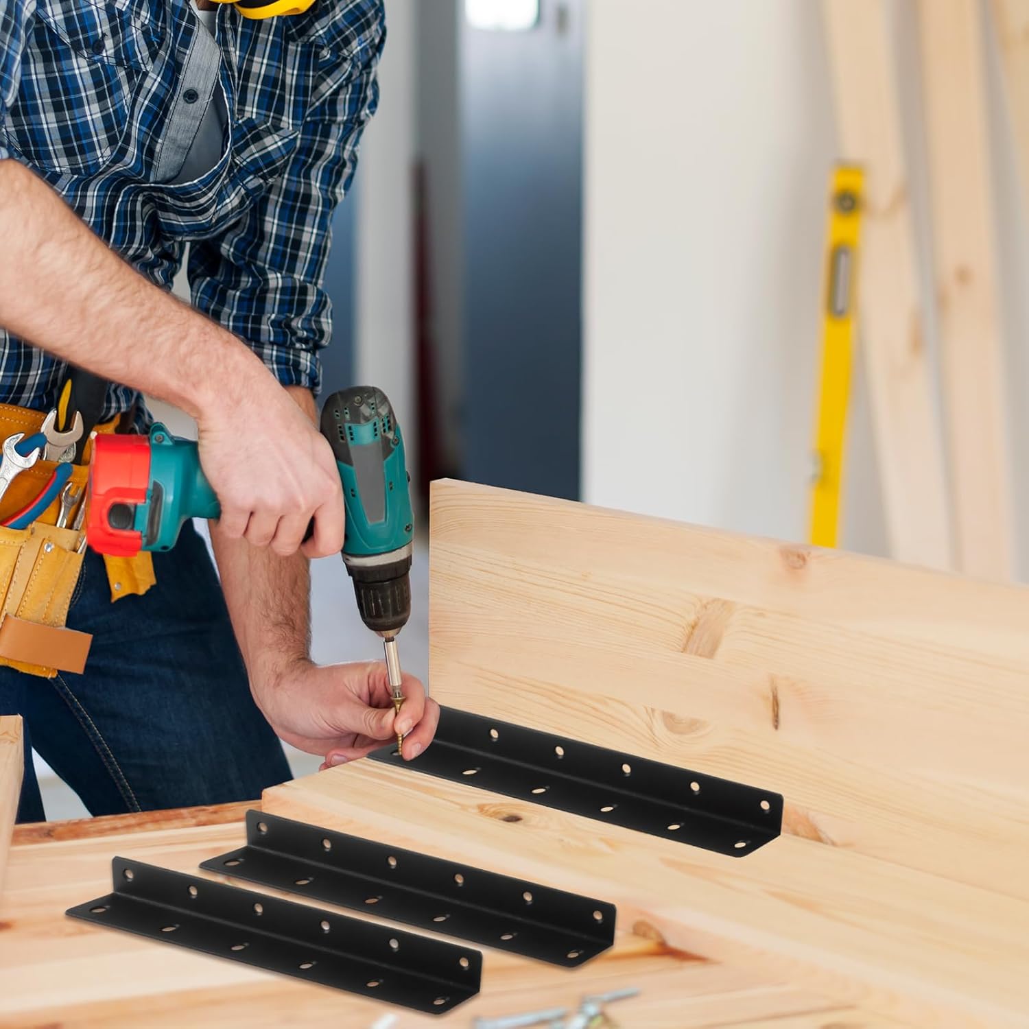 Product specifications: Material: stainless steel (rust resistant). Colour: black. Dimensions (L x W): 275 x 25 mm. Thickness: 2 mm. Style: Industrial & Functional Box contents: 12 x angle profile and 8 bags of mounting screws (self-assembly). Areas of application: ideal as a robust angle connector black for shelves, furniture, scaffolding and in the DIY sector. This steel angle provides reliable connections. Special features: this perforated angle profile steel is versatile. The angle black metal is corrosion resistant and the angle profile perforated allows flexible installation.