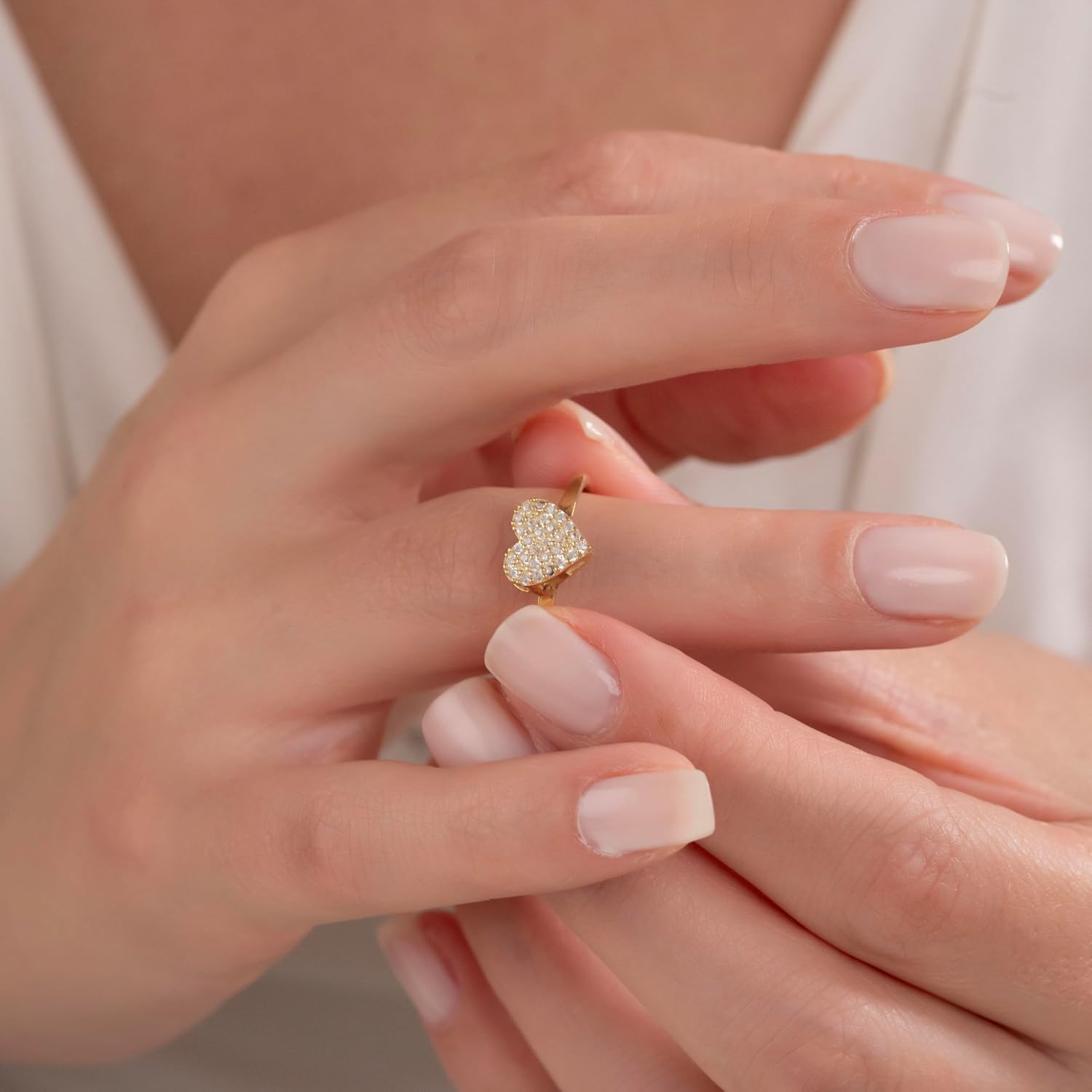 The heart is the universal symbol of love, and our Pave Heart Ring is designed to capture that feeling in a dazzling, wearable form. This ring is a quiet, constant reminder of a love that is pure, enduring, and beautifully bright. The miniature stones are intricately set into a heart motif, reflecting the light with a brilliance that mimics genuine diamonds, all nestled on a delicate band of 14K Gold Plated Sterling Silver. It’s sophisticated, subtle, and effortlessly romantic. Gift this exquisite ring to the one who holds your heart. It’s a profound, elegant token of affection a beautiful, everyday commitment she can carry with her, symbolizing a love that truly shines forever.