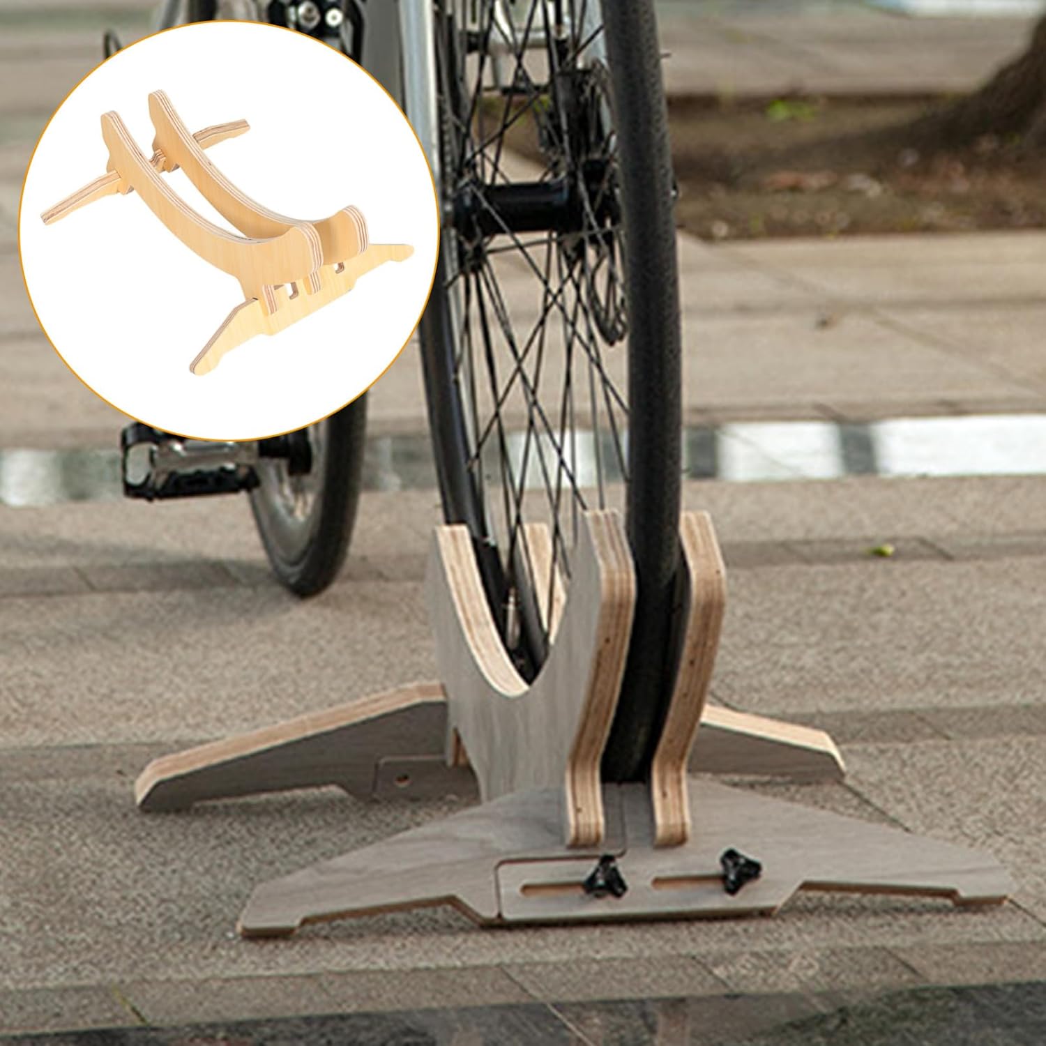 Package List 1 x bike rack Features -Material:Wood bike stand -Color:Light Brown repair -Size:52.00X40.00X22.00cm/20.44X15.72X8.65in cycle rear bracket - Crafted from wood for use Lightweight and compact, for on-the-go repairs bicycles supply. - Helps to prevent damage to your bike by providing a secure and stable resting place bike parking stand. - Fit for use in a variety of settings, including home workshops, bike shops, and outdoor events bike stand floor. - bike rear parking stand for both road bikes and mountain bikes bike rear parking stand. - Doubles as a stylish bike display stand assembly without any tools required bicycles.Goods Informationbike leg support Are you looking for a professional, yet reasonable bike parking holder? Are you in search of a sturdy, trustworthy accessory that can do multiple jobs at once? , ! Our bike storage rack must meet your needs, this bike parking holder is one of the great choices for you
