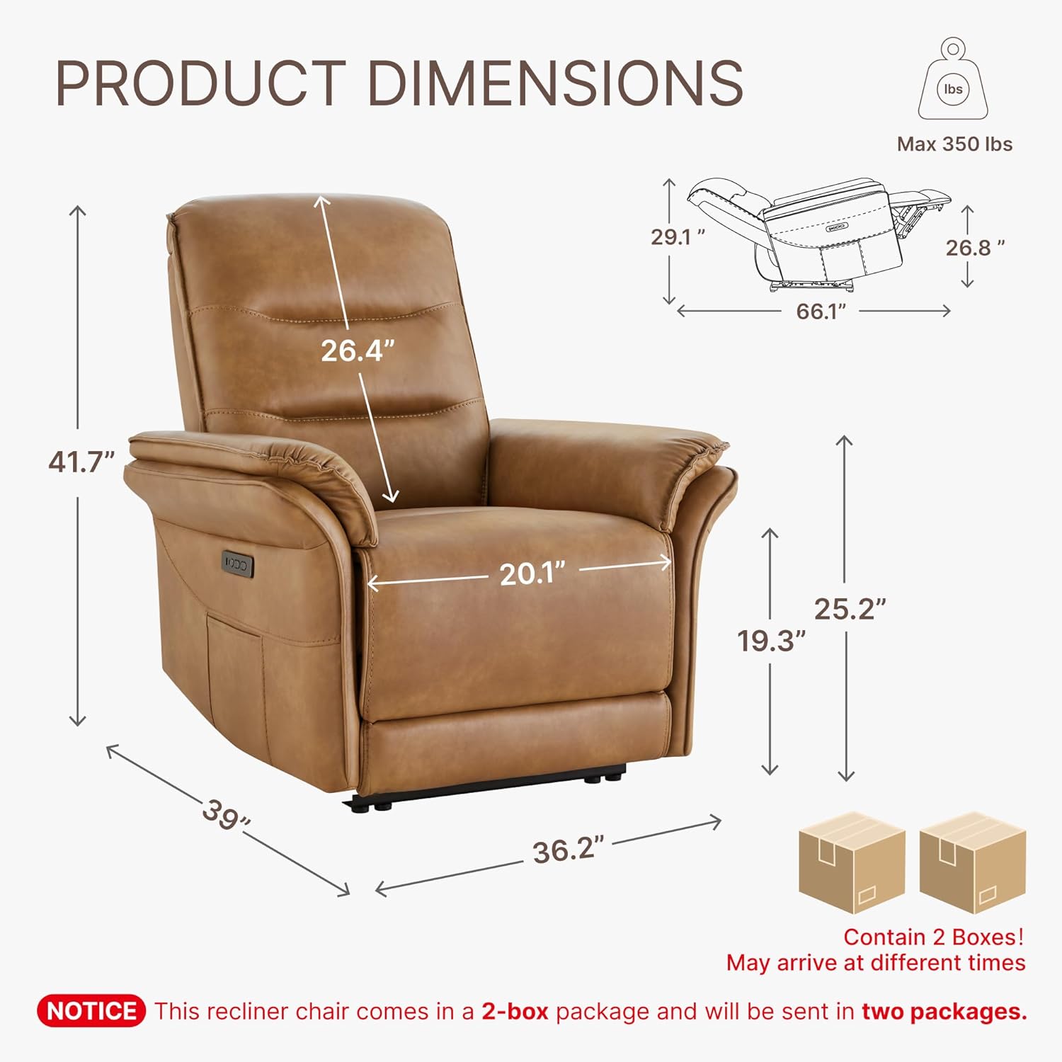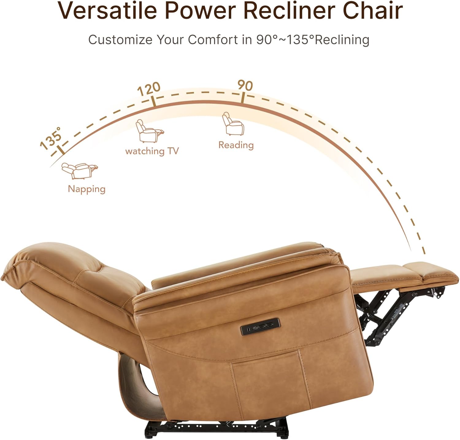 KISLOT Power Recliner Chair with Adjustable Headrest and Footrest, Leather Reclining Chair with USB/Type-C Charging, Modern Electric Recliner for Adults Living Room Bedroom