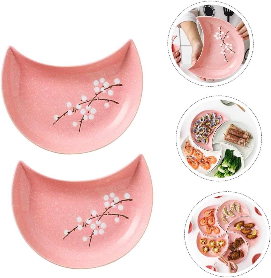 Package Include 2 x Moon shape Trays Features - Material: Ceramic japanese dishes - Size: About 22.80X17.80X3.20cm/8.96X7.00X1.26inch japanese style plates - Color: Pink multifunctional side dish plate - Made of for and use sushi dishes. - Ceramic material, and the product is healthy and tasteless ceramic sushi plates. - Also can be housewarming present choice for your friends japanese plates. - Designed for storing sushi, dessert, etc., bring you a new feeling sushi - Suitable for restaurants, hotels, special parties and family dinners Ceramic Sushi Goods Informationmultifunctional side dish plate Perfect for storing sushi and other food.japanese style plates This is a ceramic sushi plate, and .sushi dinnerware It has a simple design, but very in use, bringing much convenience to you.japanese serving dishes Suitable for restaurants, hotels, special parties and family dinners