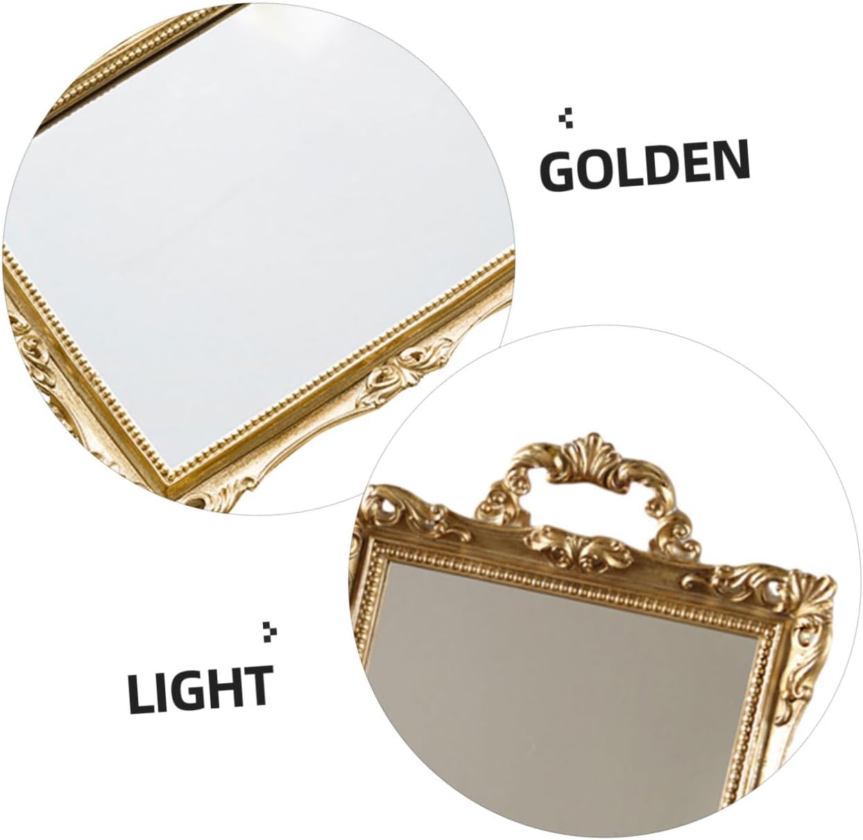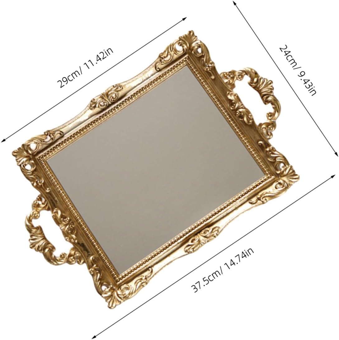 Package Include 1 x tray Features - Material: resin and glass mirror Tray Photo Prop. - Size: About 36.80X23.00X5.00cm/14.49X9.06X1.97inch Wedding Storage Tray. - Color: golden Delicate Mirror - With fine craftsmanship, looks beautiful and elegant, a nice decor for your home Retro Storage - for wedding party, home, office, hotel and so on, etc Retro Carved Tray. - and glass and resin material, it is and to use Room Decorative Tray. - Great for displaying cake, dessert, fruit, candy, chocolate, pastry and more Wedding Storage - Brand-new and great , for you to store small items like some cosmetics and small jewelries Vintage Carved Tray.Goods InformationPerfume Storage Tray Made of resin and glass material, and .Mirror Tray Ornament want to have storage mirror tray? If yes, our item is your a choice.Retro Carved Tray This Nordic style retro mirror tray can hold many small things such as keys, fruit, perfume, cosmetics and so on