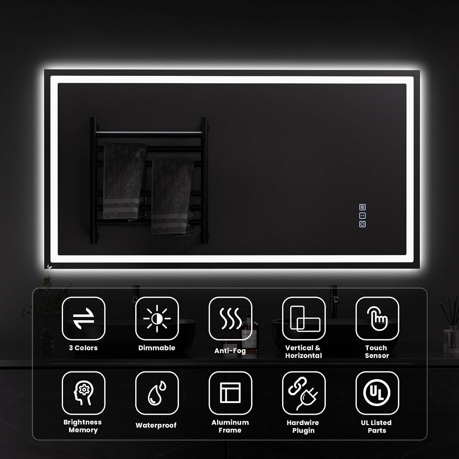 QAOYEDE Dimmable LED Bathroom Mirror with Defog Feature and Memory Function Elevate your bathroom experience with the QAOYEDE Dimmable LED Bathroom Mirror, a perfect blend of style and functionality. This light up bathroom mirror is designed to enhance your daily routine, offering a range of features that make it an indispensable addition to any modern bathroom. Key Features: - Dimmable & 3 Color Temperature Settings: Customize your lighting to suit your mood and needs. Whether you need bright, natural, or warm light, this led lighted bathroom mirror provides three adjustable color temperatures to ensure you always look your best. - Defog Feature & Memory Function: Say goodbye to foggy mornings with the built-in defog feature. The anti fog mirror for bathroom ensures a clear reflection every time. Plus, the memory function remembers your last settings, so you don't have to adjust the light every day. - Reinforced Glass & Durable Design: Built to last, this rectangle bathroom mirror is made with reinforced glass, providing a sturdy and safe option for your bathroom. The sleek, modern design complements any decor, making it a versatile choice for both traditional and contemporary spaces. - Backlit + Front-lit Illumination: Enjoy even and flattering lighting with both backlit and front-lit options. This vanity mirror with led lights provides a soft, ambient glow and direct, focused illumination, ideal for makeup application and grooming. - Easy Installation & Versatile Power Options: Whether you prefer a plug-in or hardwired setup, this bathroom mirror for over sink is easy to install. The simple and intuitive installation process means you can enjoy your new mirror in no time. - Perfect for Any Space: Ideal for small or large bathrooms, this small bathroom mirrors for over sink fits perfectly above your vanity, enhancing the overall aesthetic of your space. It’s also a great choice for those looking for espejos para baños modernos (modern bathroom mirrors). Why Choose QAOYEDE? QAOYEDE is committed to providing high-quality, innovative products that meet the needs of modern homeowners. Our vanity mirror bathroom wall is not just a mirror; it's a smart, stylish solution that enhances your daily routine. Whether you're getting ready for a busy day or winding down at night, this .