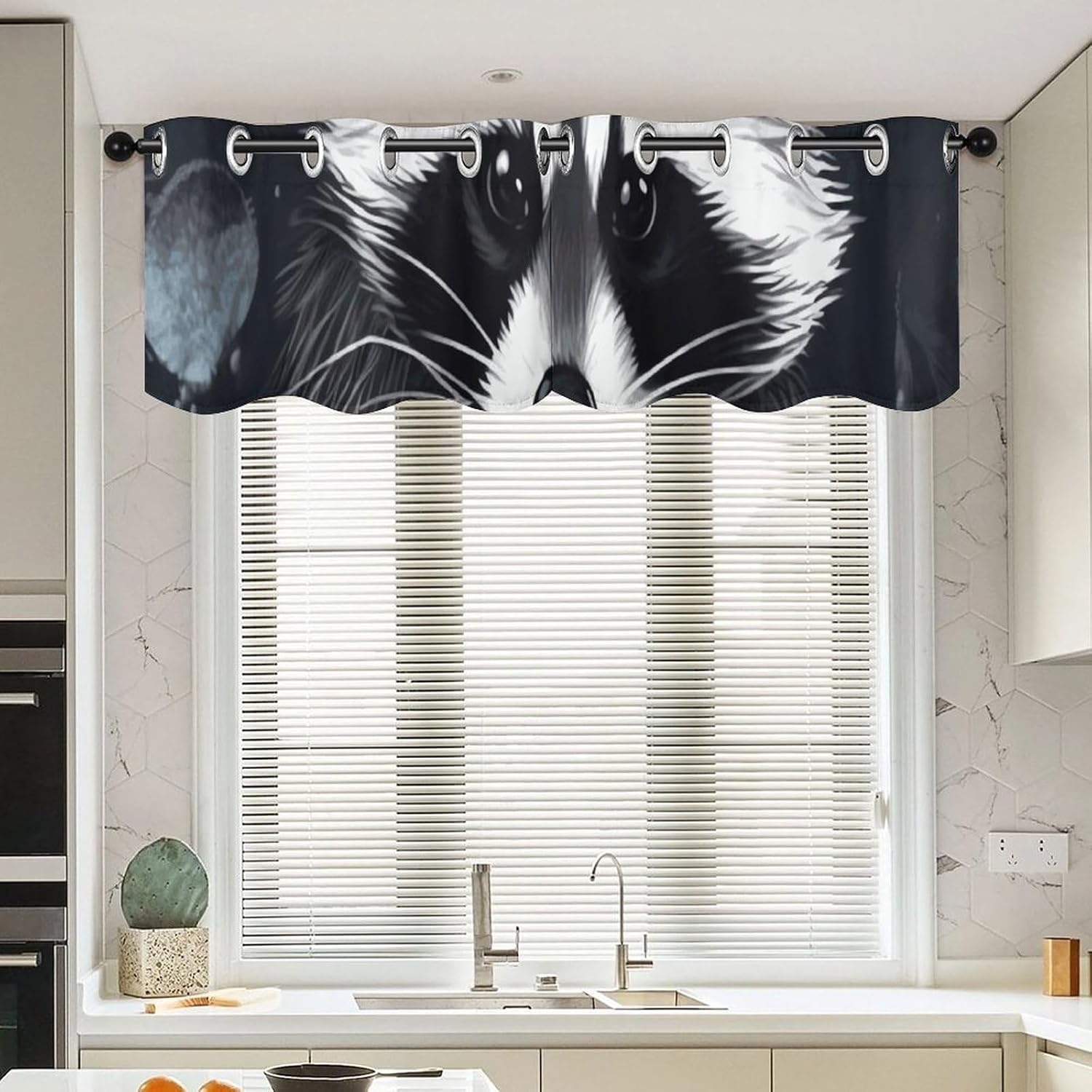 Introducing our 2-piece Raccoo Pattern Curtain Valance, a wonderful blend of functionality and elegance to elevate your window decor. Measuring 52 x 18.1 inches per piece, this Raccoo Pattern curtain set fits most windows, making it a versatile choice for any room. Crafted from premium curtain fabric, it combines soft touch with long-lasting durability, bringing comfort and practicality to your space. This Raccoo Pattern modern curtain features an elegant appearance and smooth texture, adding sophistication to your windows. As a light filtering curtain, it gently softens sunlight while providing moderate privacy, creating a warm glow—ideal for spaces wanting natural light without harsh glare. It also boasts impressive light-blocking performance, insulating your room from heat, protecting furniture and floors from UV damage, and creating a comfortable environment for better sleep. Designed for convenience, each Raccoo Pattern curtain has a 4.5cm curtain hole for easy installation on most rods. The washable fabric maintains its shape and softness after multiple washes, with nice drape to keep it neat. Whether you need a kitchen curtain, cafe curtain for a cozy nook, or tier curtain for layered decor, this Raccoo Pattern set fits well. Versatile and stylish, this Raccoo Pattern set works seamlessly as Valances or Curtain Valance, complementing various decor styles. It can also be used as a printed curtain to add a subtle decorative touch to your living room, bedroom, kitchen, or other spaces. Suitable for most windows, this Raccoo Pattern modern curtain is a practical that combines functionality with timeless style. Upgrade your window treatments with our 2-piece Raccoo Pattern Curtain Valance set—where quality, style, and functionality meet.